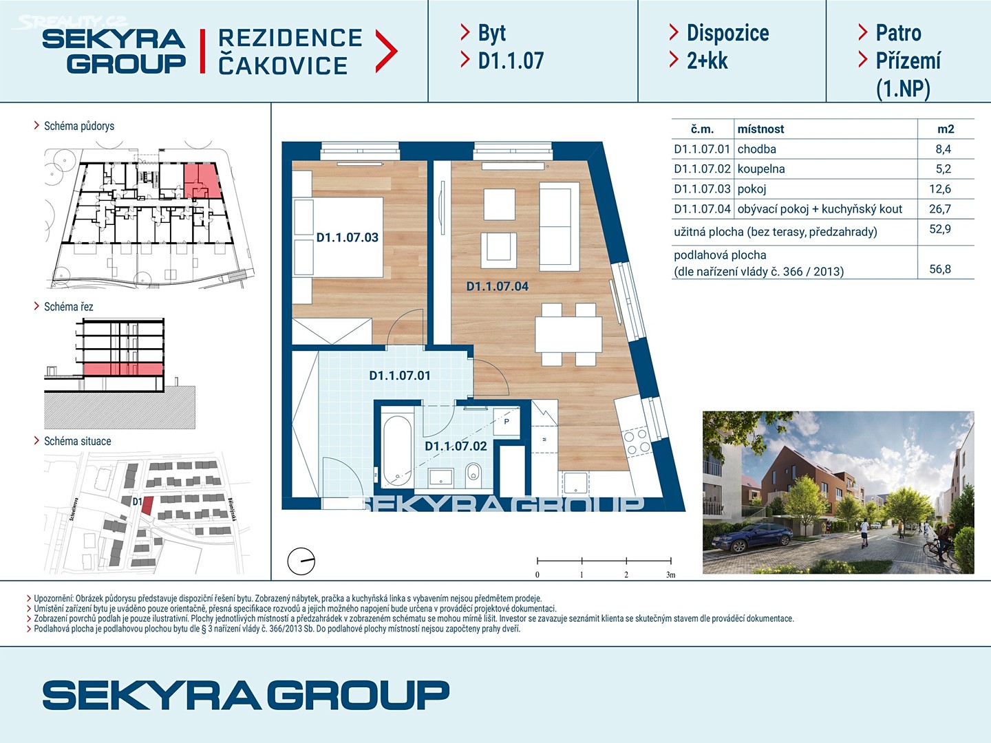 Dovolujeme si Vám nabídnout k prodeji byt 2+kk o výměře 56,8 m² v rezidenčním projektu Rezidence Čakovice.