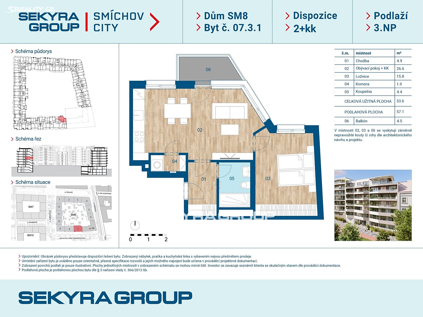 Dovolujeme si Vám nabídnout k prodeji byt 2+kk o výměře 57,1 m² s balkónem 4,5 m² v rezidenčním projektu Smíchov City, blok SM8.