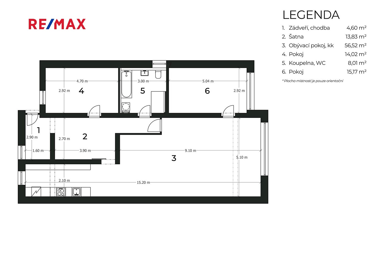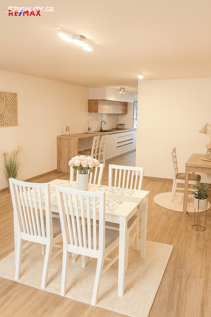Na obývací pokoj navazuje kuchyň s moderní kuchyňskou linkou s vestavěnými spotřebiči - pečící troubou, sklokeramickou deskou i mikrovlnnou troubou a samozřejmě myčkou. Jistě vás potěší dostatek místa pro kulinářské umění i uložení potřeb. A nechybí zde ani snídaňový ostrůvek.
