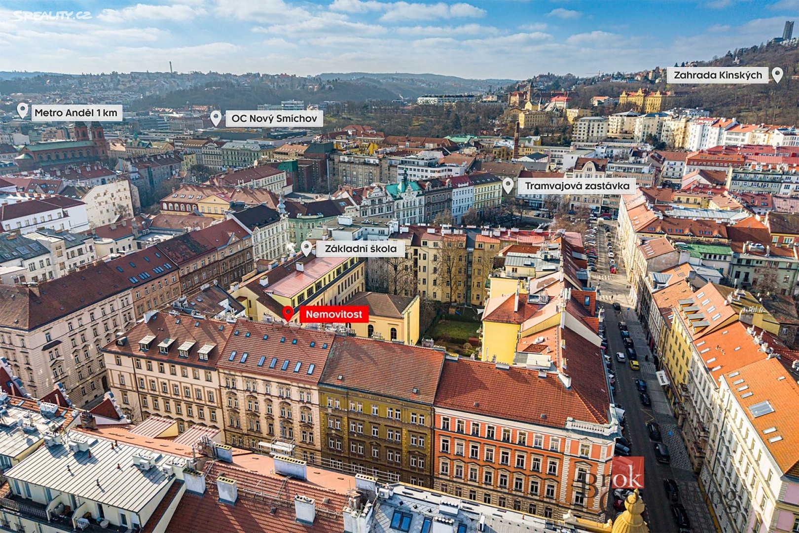 V okolí najde nový majitel množství tramvajových a autobusových spojů, snadný přístup k metru, kavárny, restaurace, obchodní centrum Nový Smíchov, parky i sportoviště. Ulice je také blízko Petřínských sadů a nábřeží Vltavy, což zvyšuje její atraktivitu pro pohodlné městské bydlení.