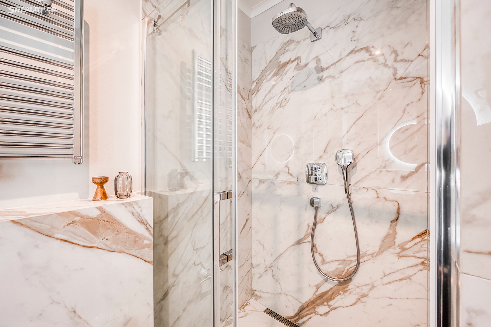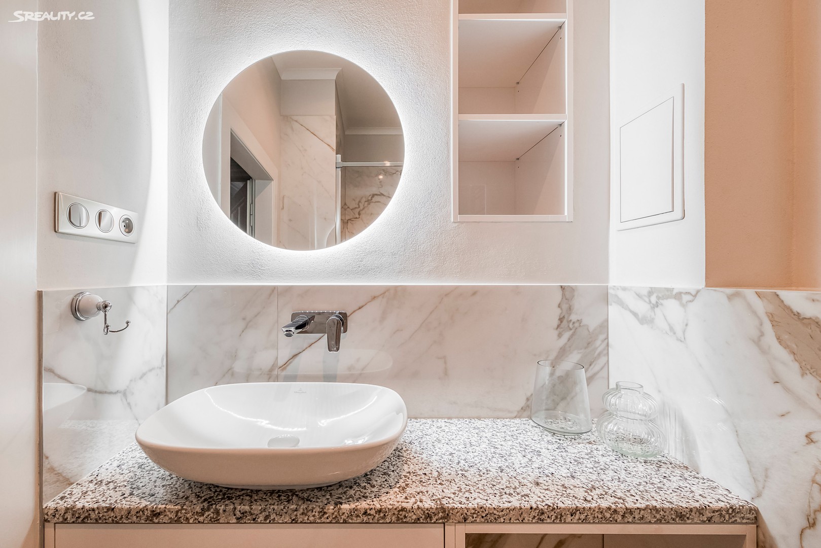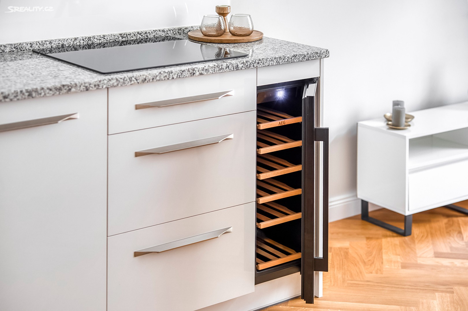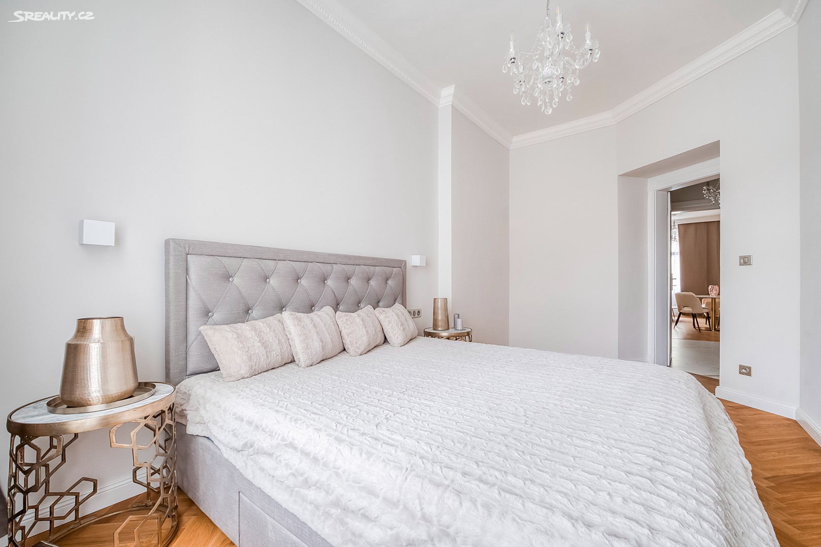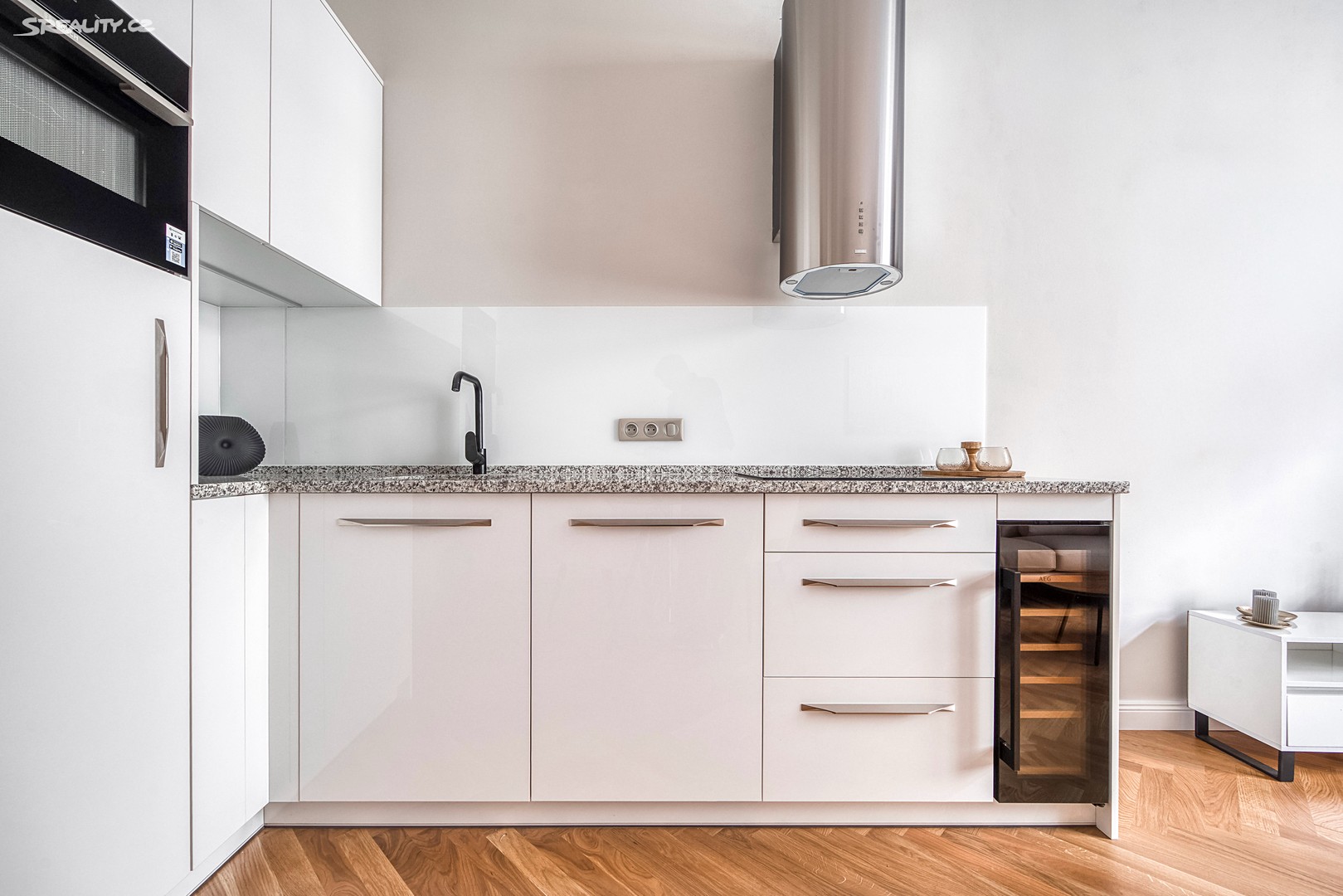 Byt nabízí: Světlý obývací pokoj s plně vybaveným kuchyňským koutem (pracovní deska z žuly Bianco Sardo, spotřebiče BOSCH, vinotéka). Hlavní ložnice s možností vytvoření šatny. Moderní koupelna se sprchovým koutem typu walk-in, toaletou a umyvadlem Villeroy & Boch, veškerá armatura značky Hansgrohe. Prostorná předsíň s velkou vestavěnou skříní a pračkou. Byt disponuje dřevěnými špaletovými okny, 3 m vysokými stropy s krásnými štukovými detaily a dalšími řemeslnými prvky, které zachovávají autentický charakter domu. Vytápění zajišťuje elektrický kotel Protherm a nová dubová masivní podlaha dodává bytu teplo a eleganci. K bytu náleží také sklep o velikosti 3,14 m².