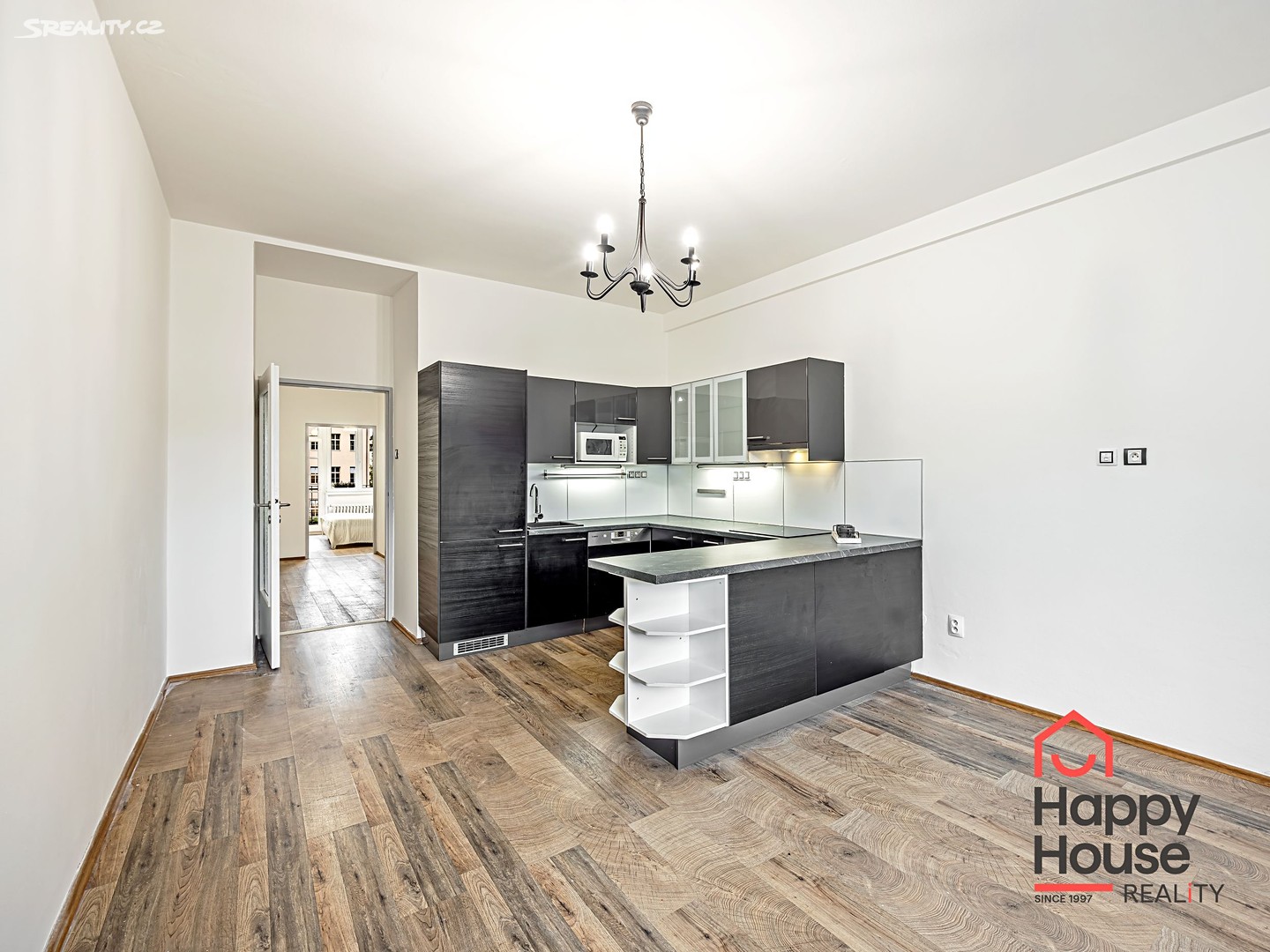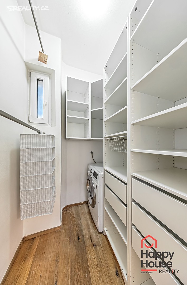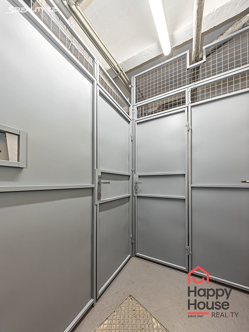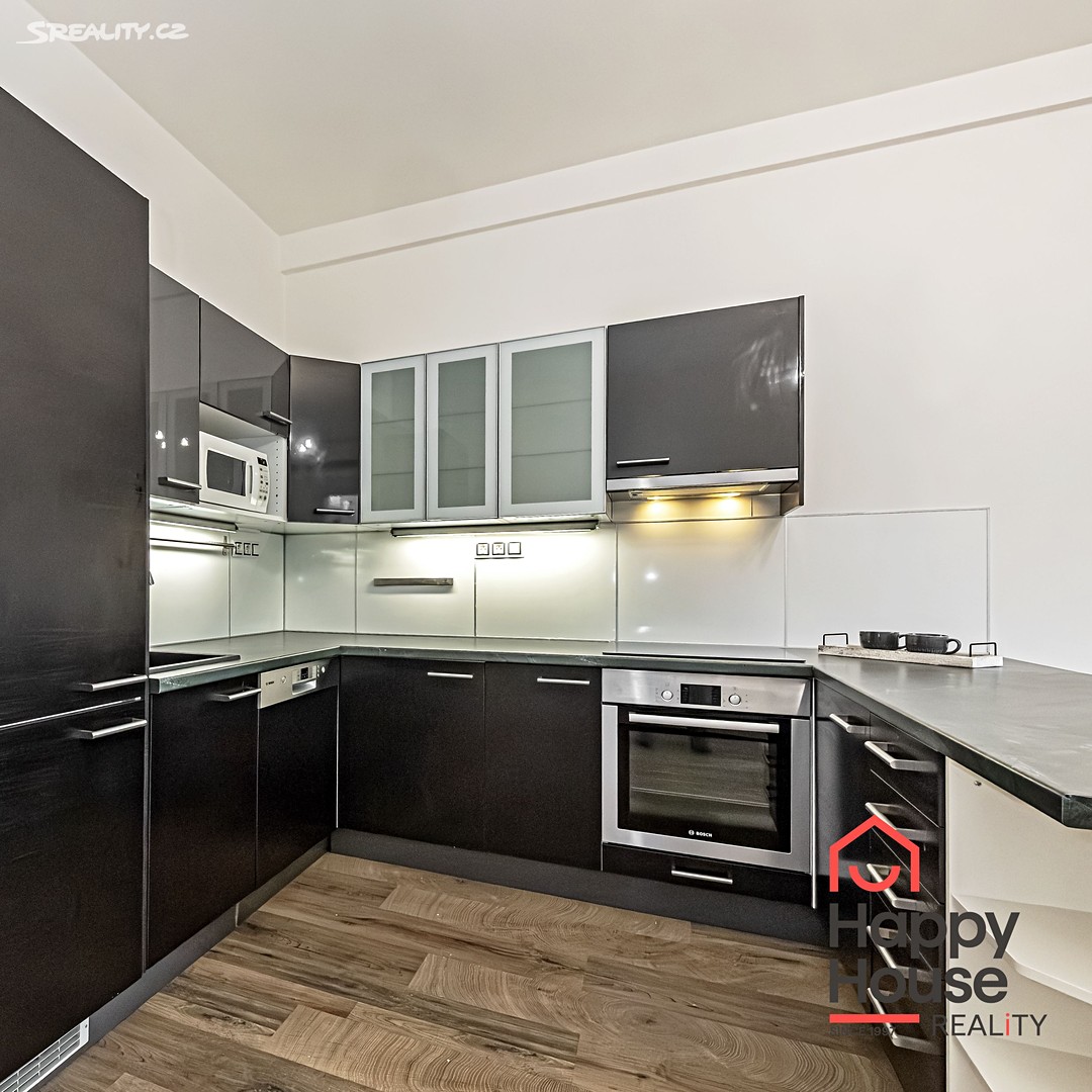 Dispozici bytu tvoří prostorná vstupní chodba (7,9 m²), obývací pokoj s kuchyňským koutem (22,3 m²), ložnice se vstupem na balkón (2,3 m²) a šatnou (17,9 m²), koupelna (2,9 m²), samostatná toaleta (1,1 m²) a komora (1 m²). Kuchyňská linka je vybavena vestavěnými spotřebiči – lednicí s mrazákem, sklokeramickou varnou deskou, elektrickou a mikrovlnnou troubou, digestoří a myčkou nádobí. V koupelně je hydromasážní vana, umyvadlo a topným žebříkem. Pračka je umístěna v šatně. Na podlahách jsou plovoucí podlahy a dlažba. Vytápění je dálkové ústřední. K bytu náleží sklep (3,3 m²). Parkování na ulici – modré rezidenční zóny.