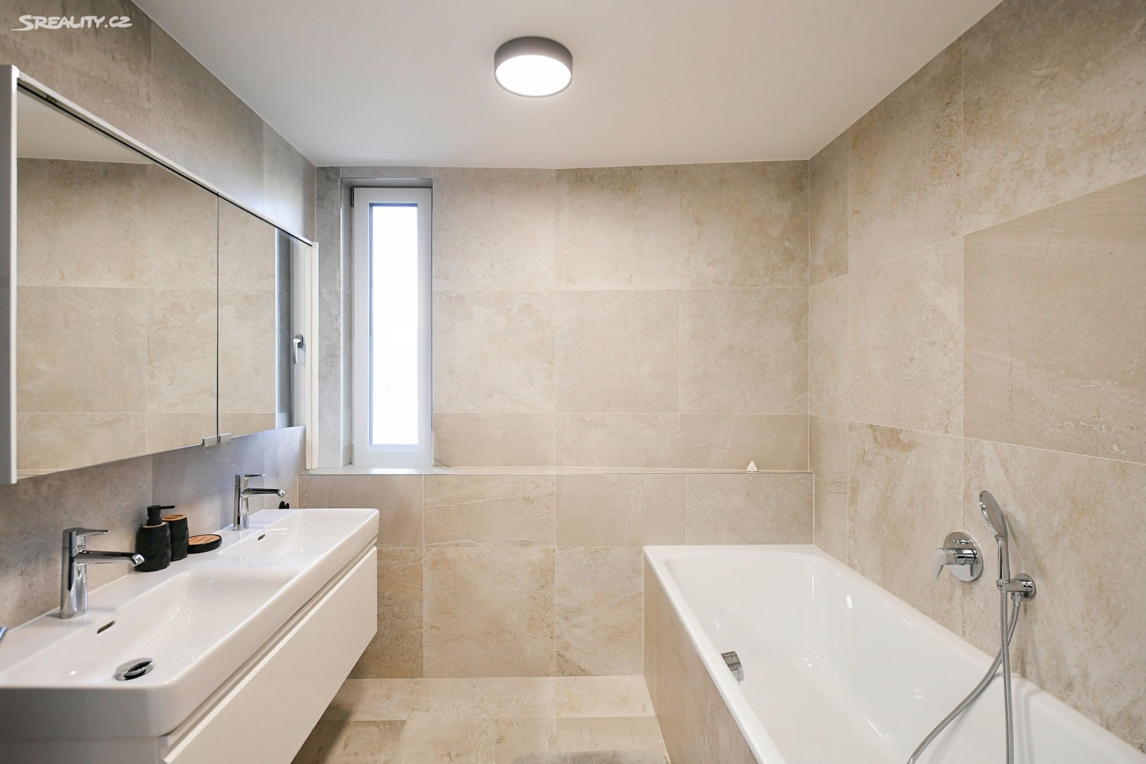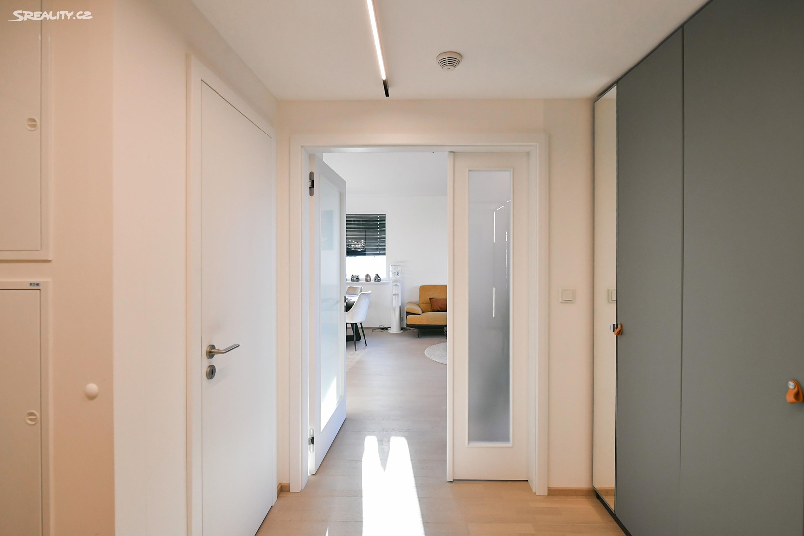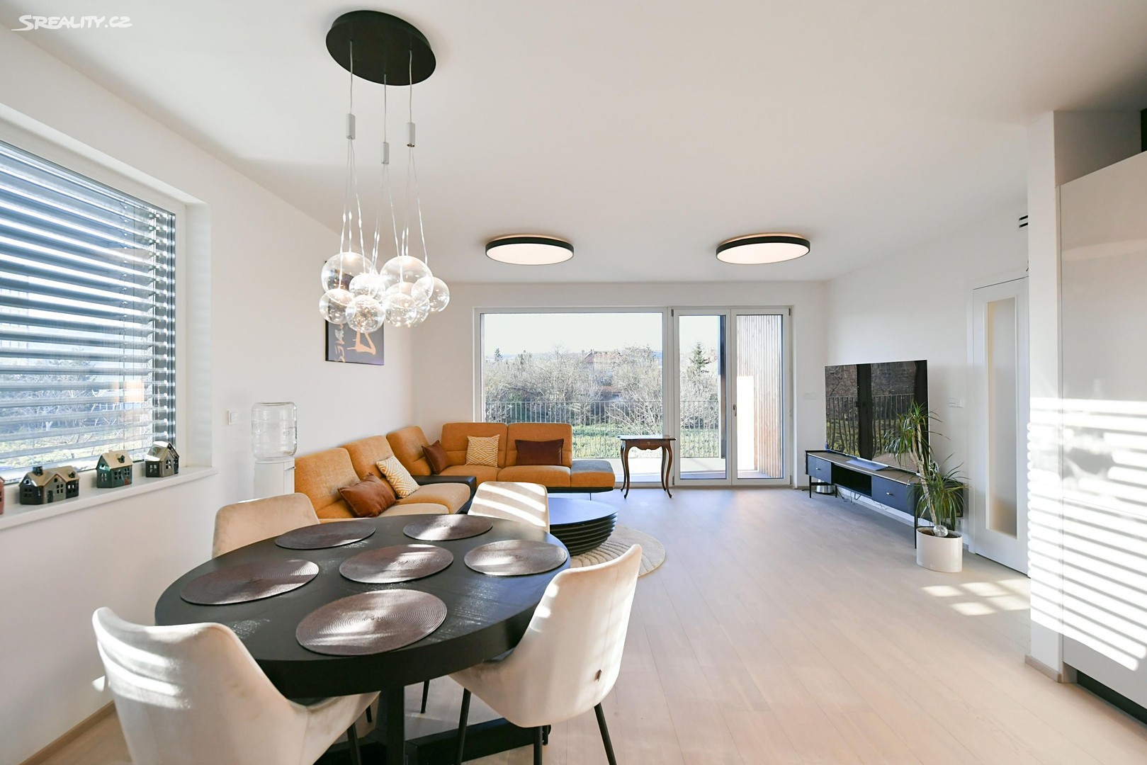 Při vstupu do bytu vás uchvátí příjemně navržený prostor a kvalitní materiály. Nemovitost se skládá z obývacího pokoje s prémiovou kuchyní vč. spotřebičů De Dietrich nejvyšší řady. Z obývacího prostoru vede vstup na velkorysý balkón s výhledem do zeleně a okolní zástavby. Byt dále disponuje hlavní ložnicí s ensuite koupelnou a toaletou, 2 pokoji, koupelnou s vanou, samostatnou toaletou, prostornou komorou a vstupní halou. Součástí prodeje je sklep a 3 prostorná garážová stání.