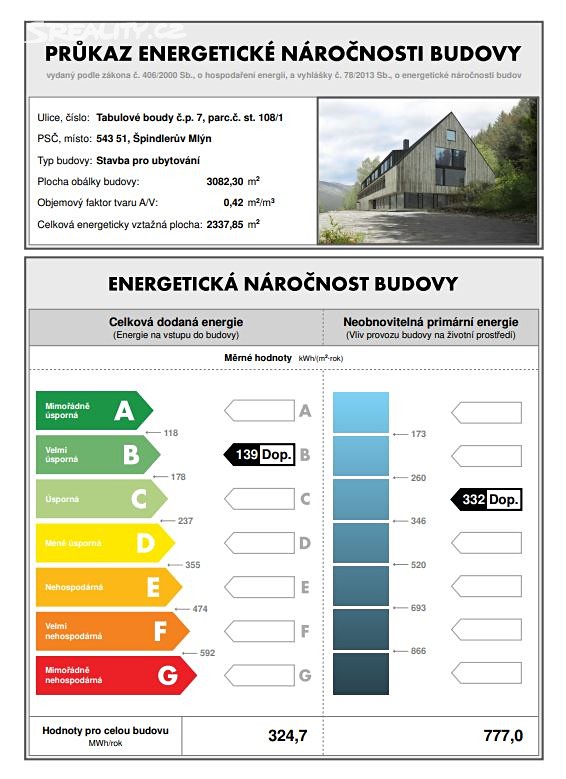 Třída B - Velmi úsporná č. 78/2013 Sb. podle vyhlášky