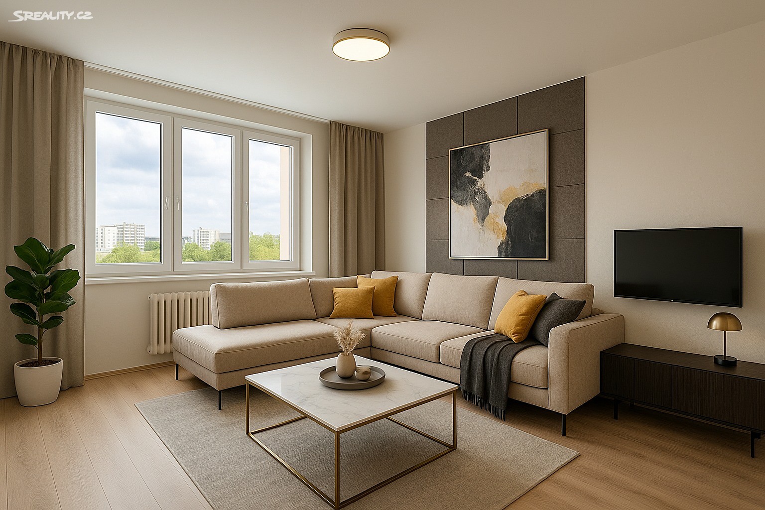 Rok 2023 přinesl nové podlahové krytiny, takže byt působí čistě, svěže a moderně.