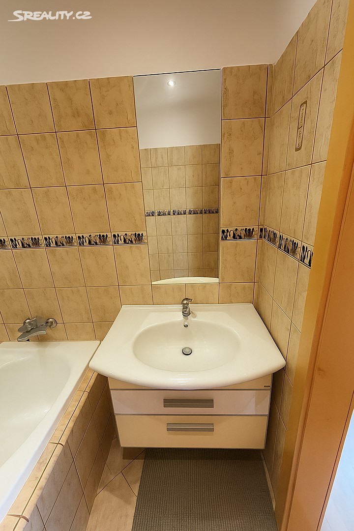 Interiér má zděné jádro, samostatné WC a designovou koupelnu v egyptském stylu, která dodává bytu osobitý charakter.
