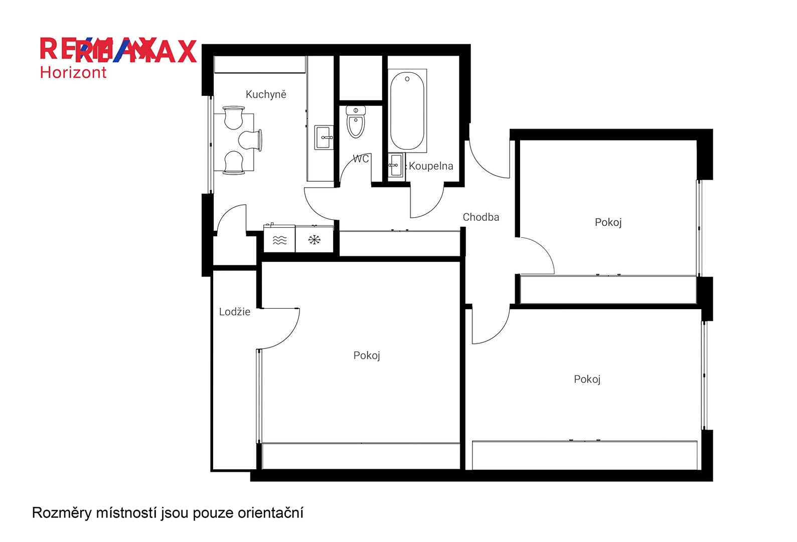 Dispozice bytu zahrnuje tři neprůchozí pokoje o velikostech 20,5 m², 14,0 m² a 17,4 m², kuchyň o výměře 10,5 m², předsíň, koupelnu, samostatné WC a praktickou lodžii. K bytu náleží prostorný sklep. Byt je v původním stavu a je určen k rekonstrukci, což dává novému majiteli možnost upravit si jej zcela podle vlastních představ. Jádro je zděné. Vytápění a ohřev vody zajišťuje vlastní plynový kotel umístěný v bytě.