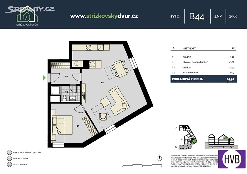 Nabízíme k prodeji byt v osobním vlastnictví o dispozici 2+kk, o výměře 66 m², ve 4. NP novostavby v projektu Střížkovský dvůr, Praha 8 – Střížkov.