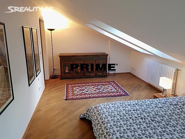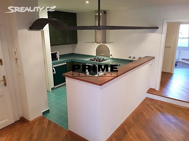 Elegantní, zrekonstruovaný, zařízený, 2 ložnicový, mezonetový byt se 2 koupelnami k pronájmu, 3+kk, 126m2, s balkonem 4m2, situovaný v 5. a 6. patře kompletně zrenovovaného novobarokního domu s výtahem. Budova se nachází v boční ulici u Karlova náměstí, na rozhraní Prahy 1 a Prahy 2, v blízkosti zastávky tramvaje, stanice metra Karlovo náměstí, obchodů, supermarketu Albert, kaváren, restaurací a pouze pár minut chůze k nákupnímu centru Quadrio i na nábřeží a 10 minut chůze na Václavské náměstí.