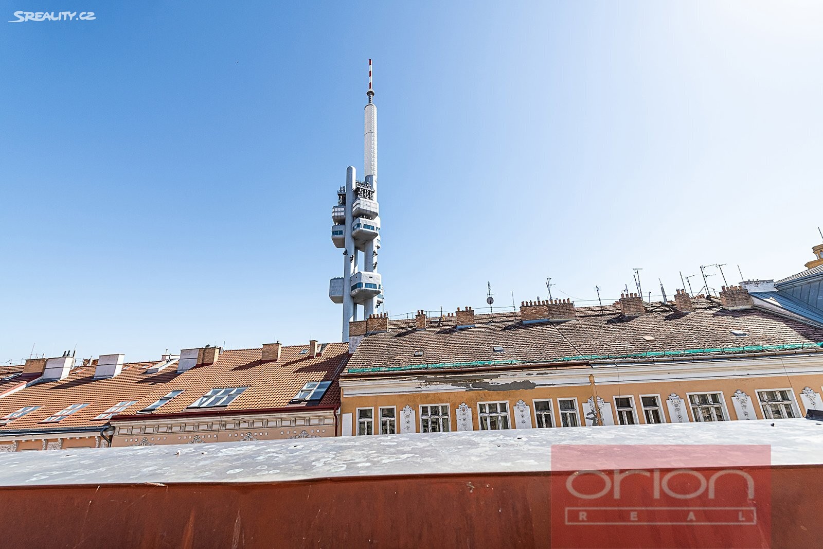 Nabízíme k pronájmu nově zařízený byt s klimatizací o velikosti 3+kk v 5. patře kompletně zrekonstruovaného secesního domu s výtahem. Byt s plochou 101 m² nabízí v nižším patře velkou vstupní chodbu, prostorný obývací pokoj spojený s kuchyní vybavenou všemi spotřebiči a krásným výhledem na okolní domy, ložnici s postelí a vestavěnými skříněmi, koupelnu se sprchou, toaletou a bidetem, samostatnou toaletu, komoru. Z chodby vede schodiště do pokoje, který lze využít jak pracovnu nebo druhou ložnici. K vybavení bytu patří dřevěné podlahy v pokojích, v ostatních místnostech dlažba, plynový kotel, velkoformátová okna, klimatizace. Dům je v oblíbené části Praha 3 - Žižkov, jen pár minut chůze od stanice metra Jiřího z Poděbrad a od parku Riegrovy sady. V místě je veškerá občanská vybavenost: obchody, restaurace, bary, bistra, v blízkosti nákupní centrum Flóra.