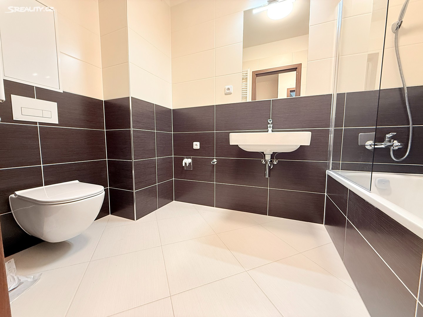 V koupelně sprchový kout, topný žebřík a závěsné WC, dále interiérové dveře, plastová okna, vinylová podlaha a dlažba, protipožární vchodové dveře.