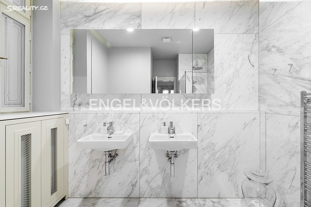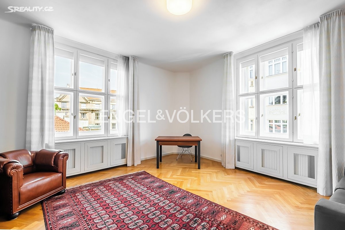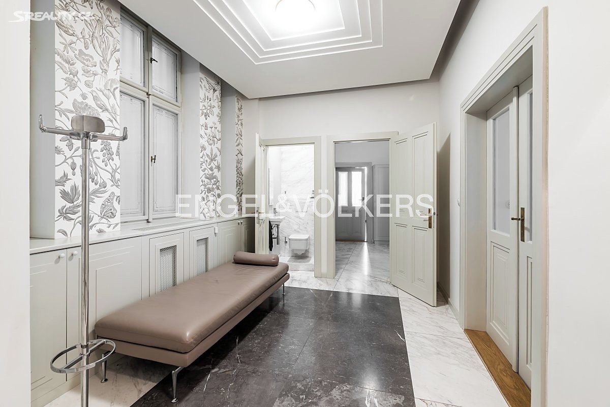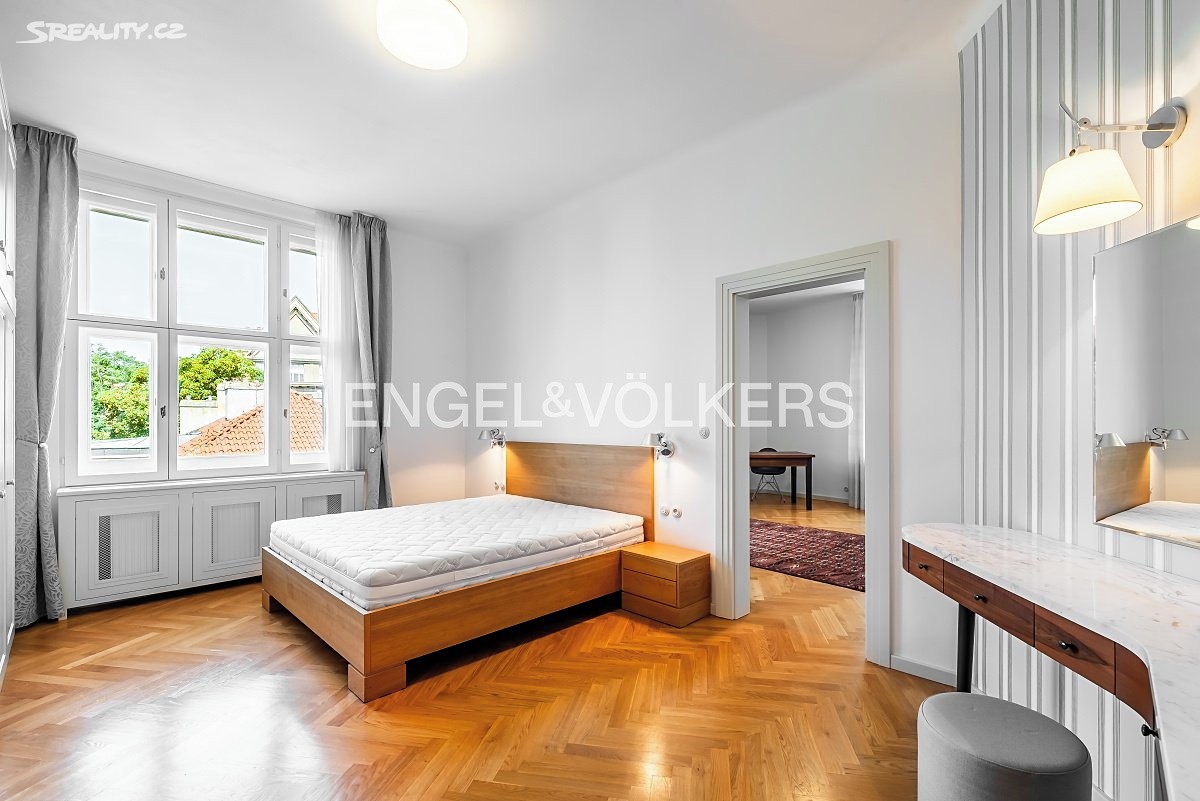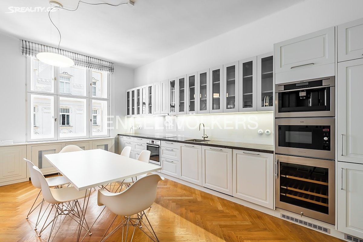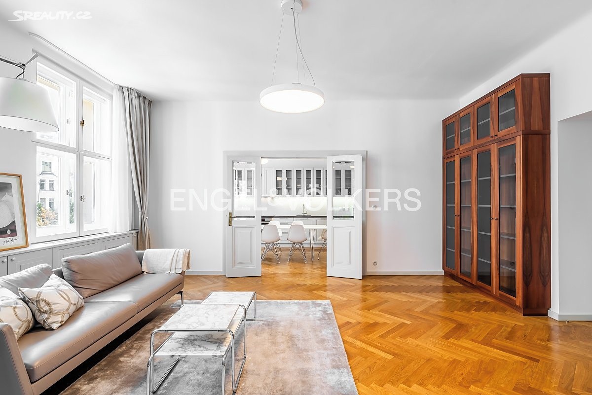 K pronájmu od 1. 6 2026 nabízíme designově zařízený prostorný byt po kompletní rekonstrukci ve čtvrtém nadzemním podlaží historického činžovního domu s výtahem. Z dlouhé haly se vstupuje do jednotlivých místností. Byt tvoří prostorný obývací pokoj ze kterého vedou dvoukřídlé dveře do nadstandardně vybavené kuchyně s jídelním koutem, a do jedné z ložnic (v současnosti zařízená jako pracovna). Dále byt tvoří druhá ložnice s množstvím vestavěných skříní a koupelna se sprchovým koutem a toaletou se vstupem z chodby. K dispozici je i druhá toaleta. Byt poskytuje dostatek úložného prostoru, součástí je i komora. Byt je zařízen kvalitním designovým nábytkem, jsou zde zachované původní prvky jako vysoké stropy, dřevěné parkety a velká špaletová okna. Vytápění je řešeno lokálním plynovým kotlem.