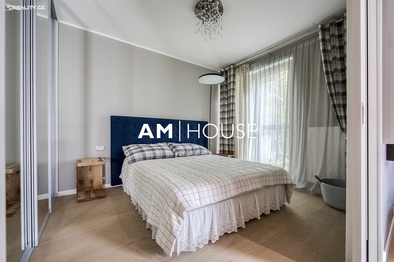 Zařízený byt se nachází v přízemí novostavby. Centrum obývací části představuje velký pokoj s kuchyňským koutem, obývací části a vstupem na terasu. Terasa je vybavena nábytkem a krbem. Obývací část je tvořena velkou rohovou modulovou pohovkou, menší rozkládací pohovkou, stolkem a TV. Kuchyň je vybavena veškerými spotřebiče. V ložnice je velká dvoulůžková postel a sestavená skříň. V předsíni je vestavěná skříň. Koupelna má vanu, umyvadlo a WC. V koupelně je podlahové topení. V bytě je klimatizace.