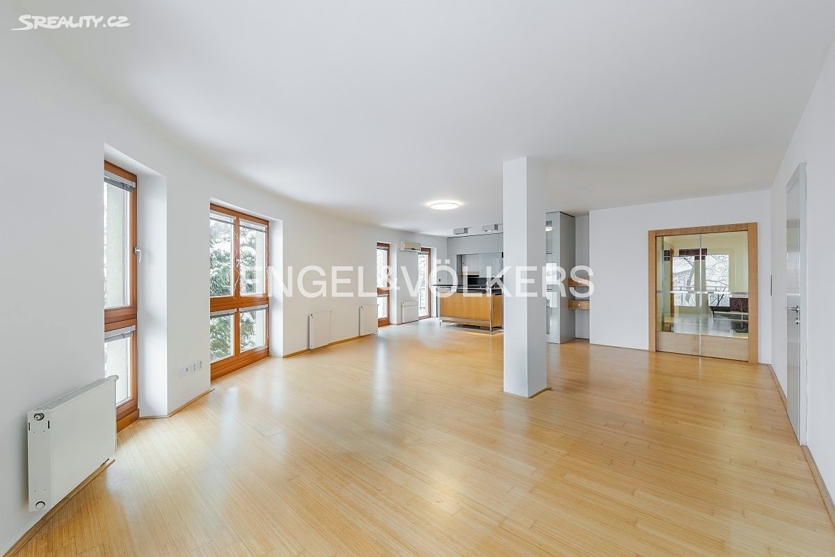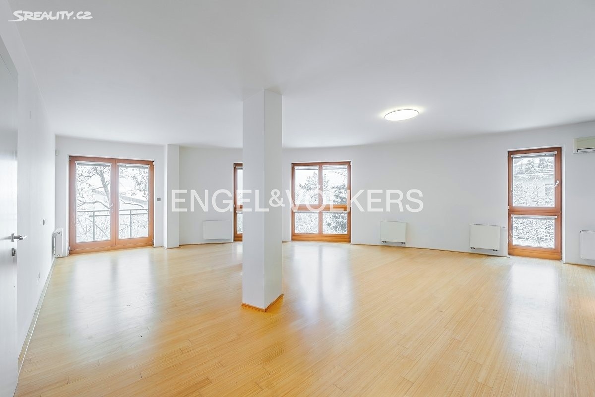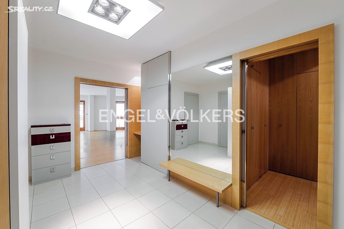 Nabízíme k pronájmu světlý a velmi prostorný byt 5+kk o ploše 170 m² ve 2. patře moderního rezidenčního komplexu s podzemním parkováním a 24 hodinovou ostrahou. Byt nabízí 4 ložnice, 2 koupelny, 2 balkony, sklep a dvě garážová stání zahrnutá v ceně.