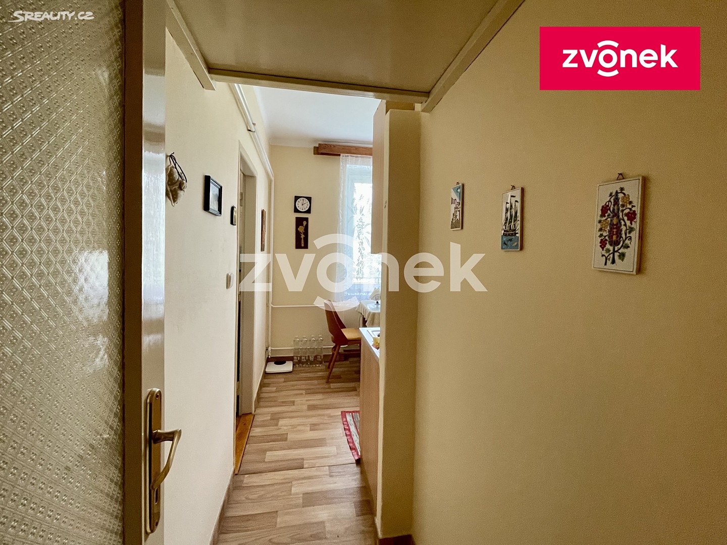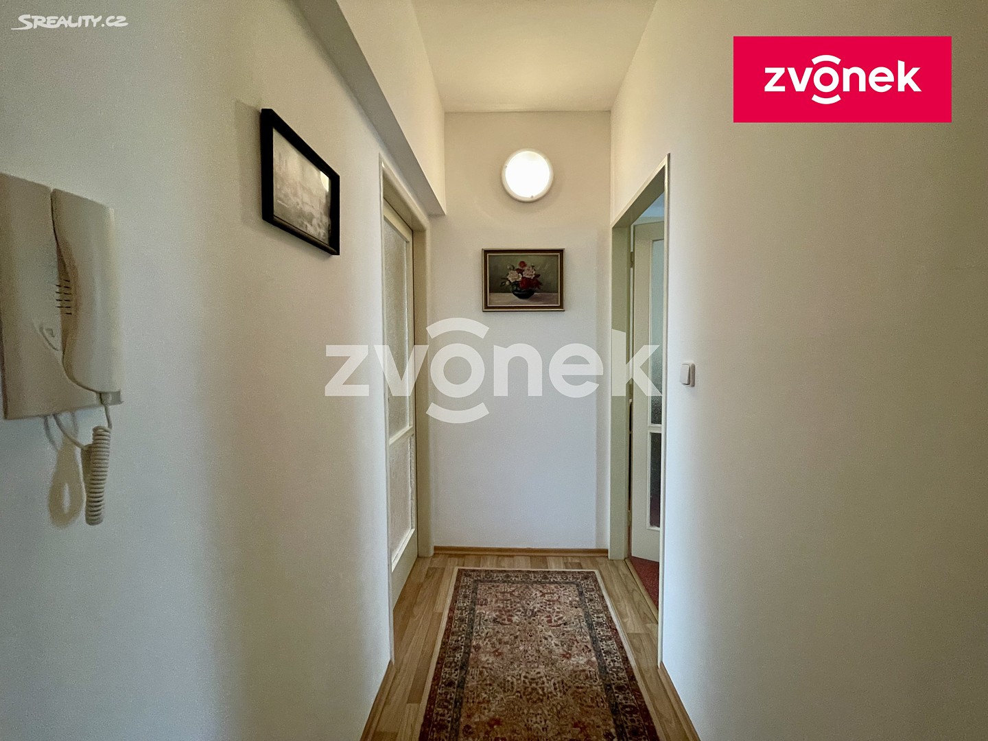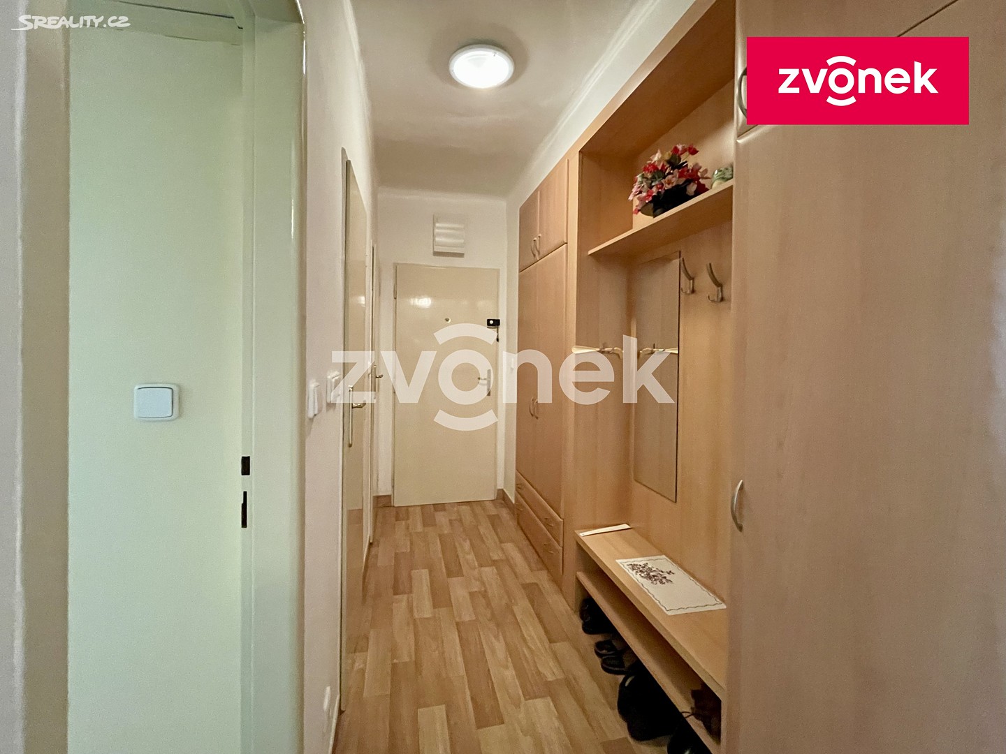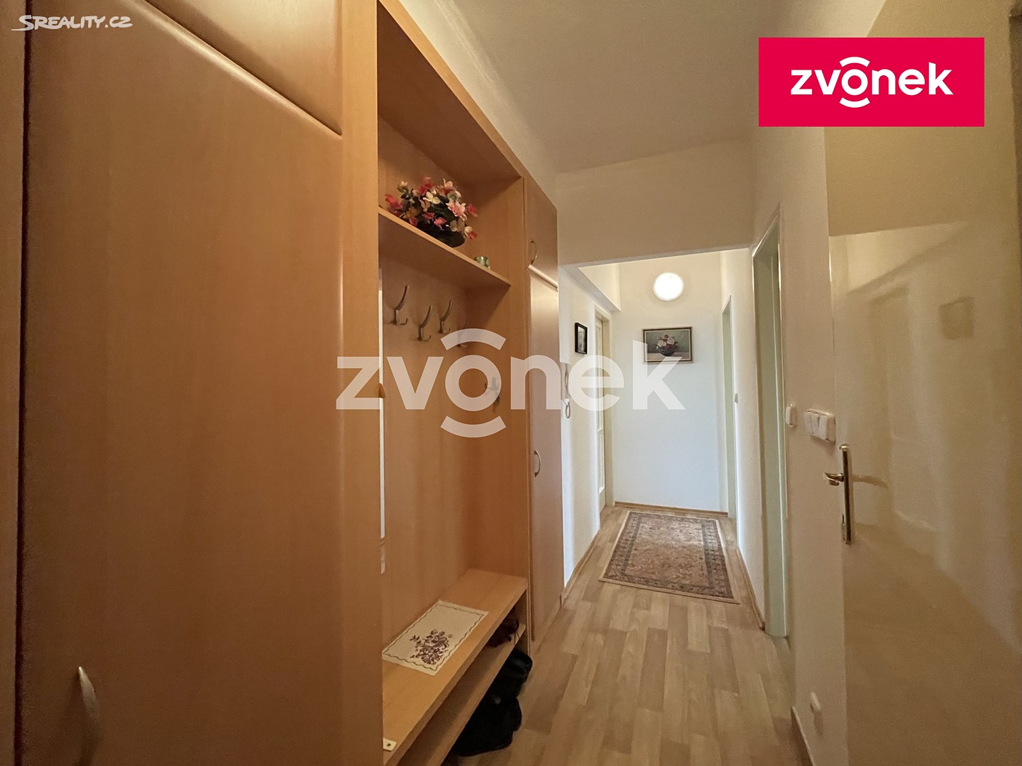 Do bytu se vchází prostornou chodbou s vestavnou odkládací stěnou a skříní na míru, vpravo jsou vstupy na samostatnou toaletu, do koupelnu s vanou, umývadlem a pračkou, do kuchyně s kuchyňskou linkou na míru s dostatkem úložných prostor a do ložnice. Naproti ložnice se nachází obývací pokoj s orientací na jih, výstupem na terasu a krásným výhledem do kraje. K bytu náleží velký sklep, který se nachází v 1.NP, výhodou je bezbariérový vstup do sklepních prostor i bočním vchodem (např. pro uložení kola).
