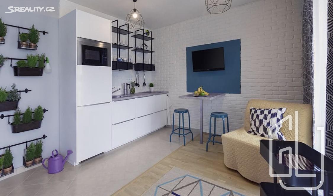 Byt je jednopokojový (studio) s koupelnou a je plně vybavený a zařízený. Kuchyň je kompletně vybavená a byt obsahuje veškerý nábytek a spotřebiče potřebné pro pohodlné bydlení.