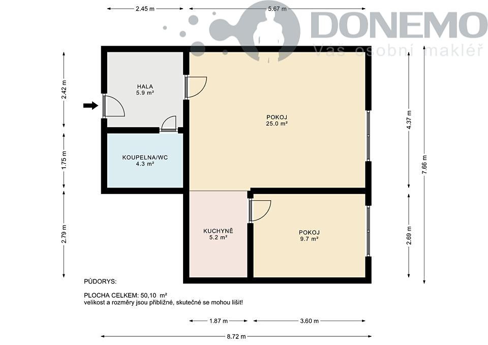 Byt se nachází ve 2 patře a jeho výměra je cca 51 m2 + sklepní kóje. Byt se pronajímá s kuchyňskou linkou včetně sporáku.