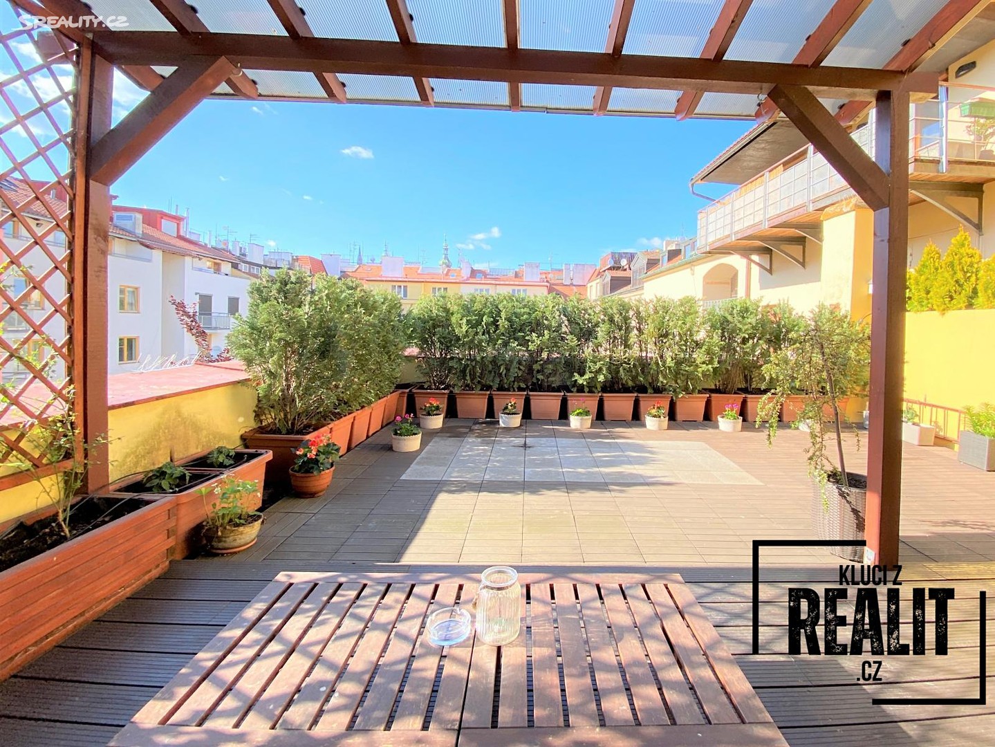 K dlouhodobému pronájmu nabízíme světlé, plně vybavené a klimatizované studio o ploše 37 m2 a vlastní rozlehlou terasou o ploše 38m2, situované ve 4. podlaží historického domu s výtahem v prestižní lokalitě Malé Strany, v ulici Újezd.