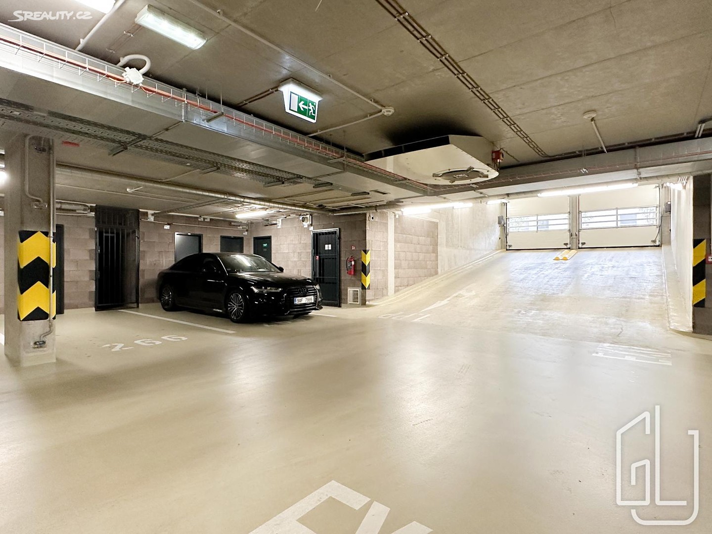 K bytu náleží parkovací místo v podzemní garáži a sklepní kóje.
