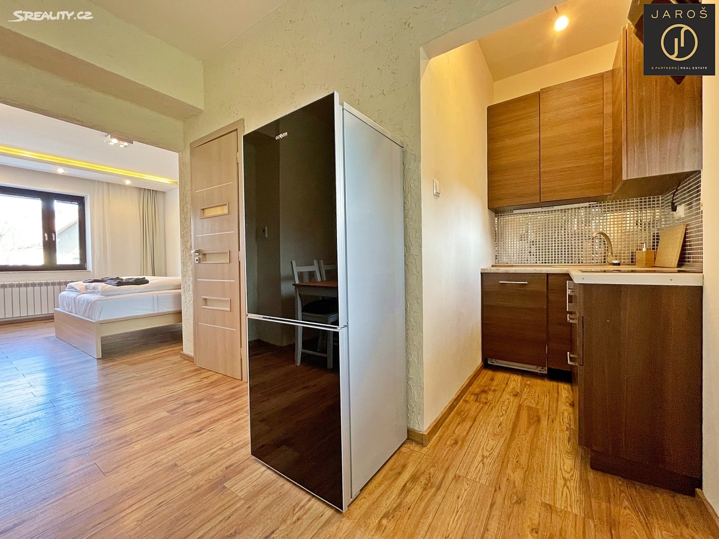 Nabízíme vám k pronájmu zrekonstruovaný byt o dispozici 1+kk 28 m2. Byt sestává z pokoje, kuchyňského koutu, vstupní chodby a koupelny s toaletou. Byt se nabízí vybavený (viz. fotografie), ihned k nastěhování. Kuchyňský kout je vybavena základním vybavením, myčkou nádobí, varnou deskou s digestoří a jídelním stolem pro 4 osoby. Postel je včetně matrací a ložního prádla.