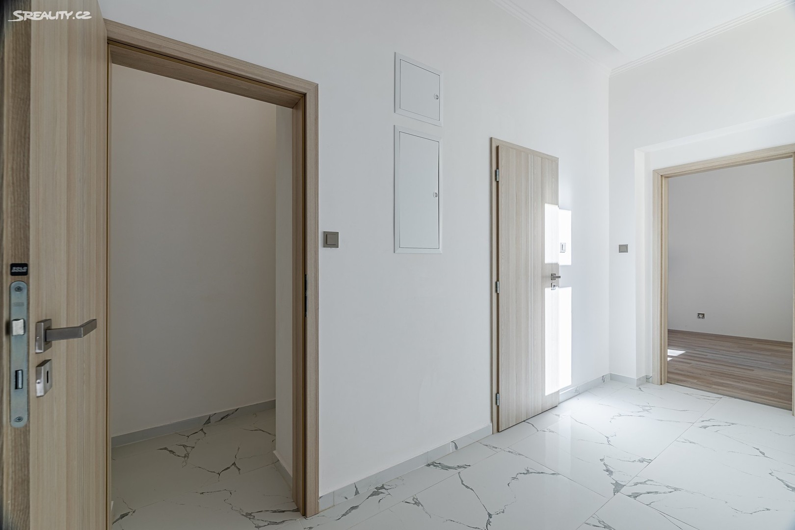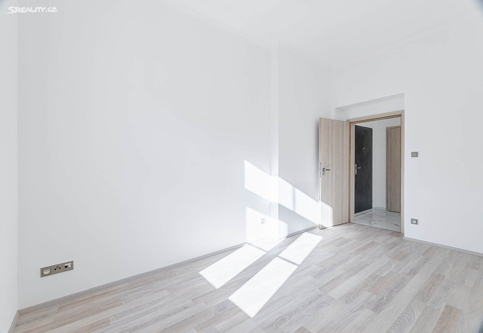 Z obývacího pokoje vstup do ložnice s výhledem na klidnou ulici, z prostorné chodby vstup do další ložnice (výhled do vnitrobloku). Designová koupelna s vanou a WC.