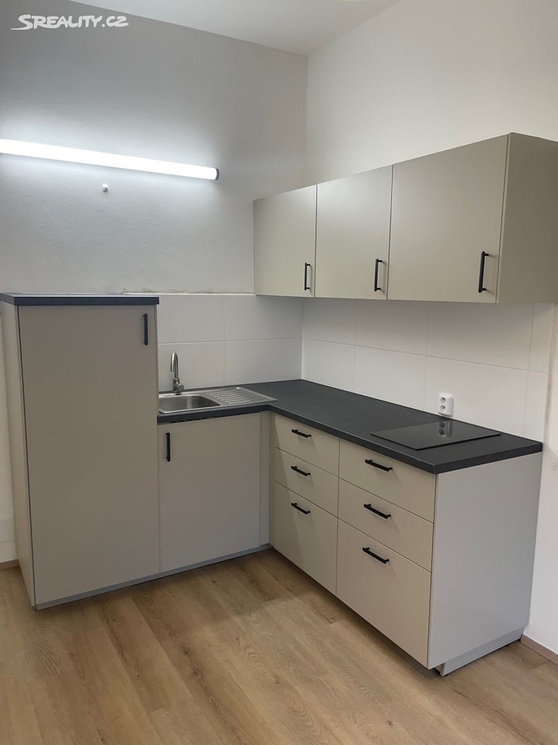 výtah. Obsah vybavení: kuchyňská linka, dvou-plotýnka, lednice. Výměra