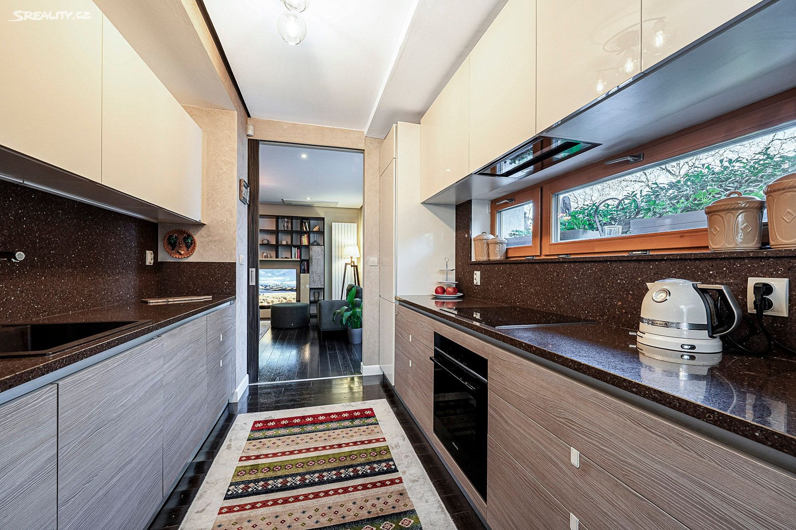 Jeho dispozice zahrnuje tři ložnice, z nichž každá má vlastní koupelnu, prostorný obývací pokoj propojený s plně vybavenou a moderní kuchyní, samostatnou toaletu, chodby a šatnu. Kuchyň je vybavena moderními spotřebiči, jako je varná deska, vestavěná lednice s mrazákem, mikrovlnná trouba, elektrická trouba a myčka nádobí. Obývací pokoj je prostorný, s přímým vstupem na zahradu s terasou o ploše 70 m², která poskytuje ideální místo pro trávení společných chvil na čerstvém vzduchu. Ložnice v posledním podlaží navíc disponuje terasou o velikosti 25,5 m², která nabízí nádherný výhled do sousedního parku. Byt dále disponuje uzavřenou lodžií (6,7 m²) a sklepem (4 m²). Součástí bytu jsou také dvě parkovací stání v garáži.