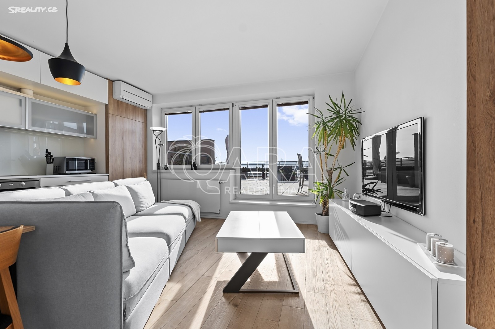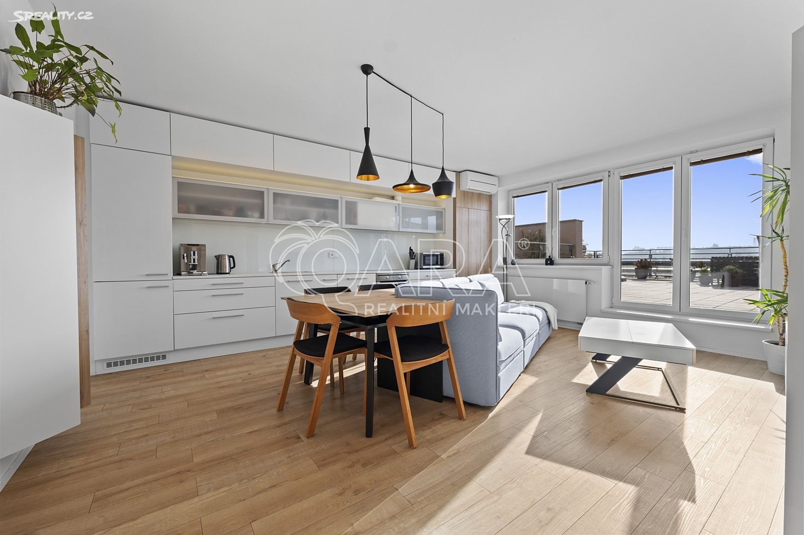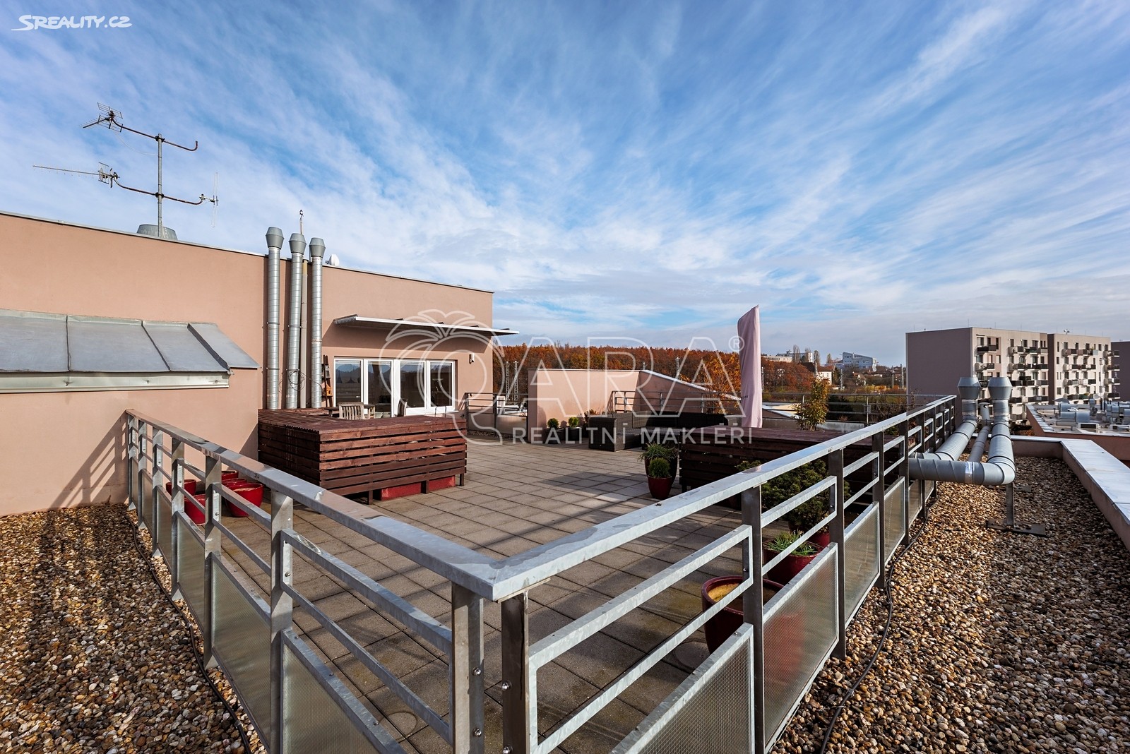 Nadstandardní byt disponuje podlahovou plochou 91 m² + terasou o rozloze 100 m², sklepem a dvěma garážovými stáními.