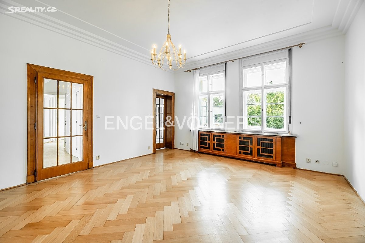 Velkorysý a reprezentativní byt s dispozicí 5+1 se čtyřmi ložnicemi a dvěma samostatnými koupelnami se nachází v kompletně zrenovované reprezentativní novobarokní vile v jedné z nejprestižnějších částí Prahy 6.