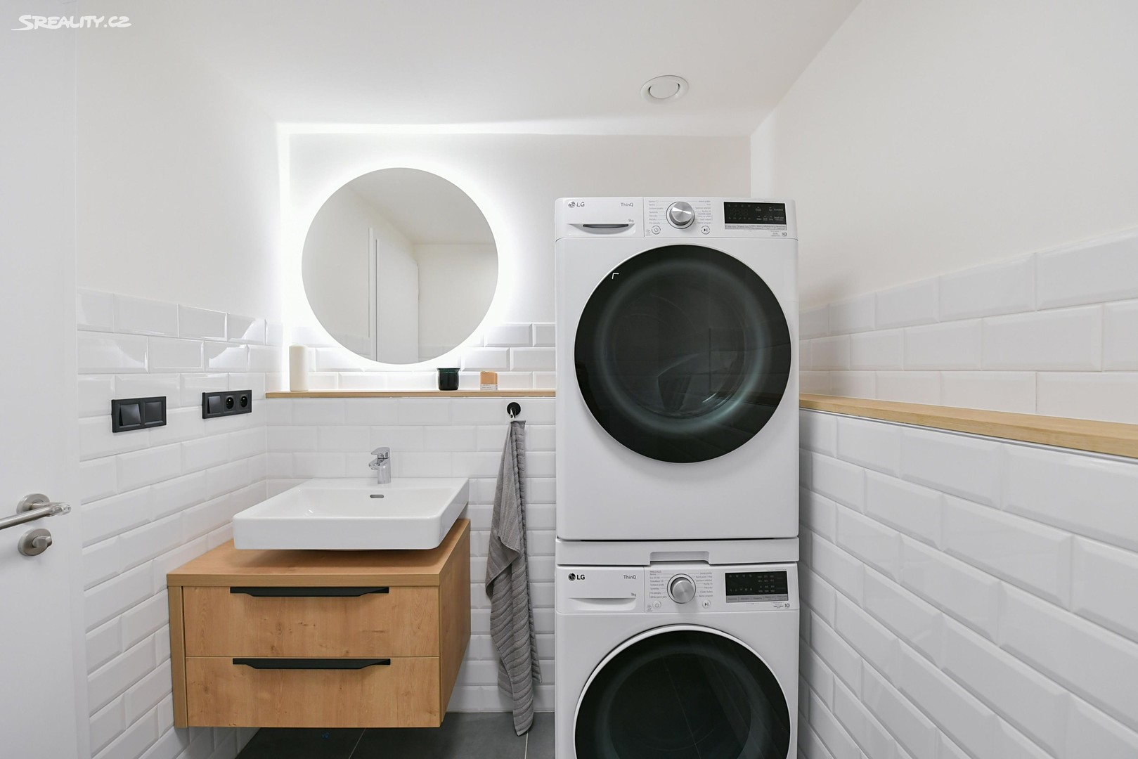 Apartment price: CZK 9,900,400. Note on the price of this specific apartment: this is a show apartment, whose furnishings (furniture, kitchen, washing machine, dryer, designer lighting, etc.) are not included in the price. Our project offers several variants of unfurnished 2.5+kk (or 2+1) apartments.