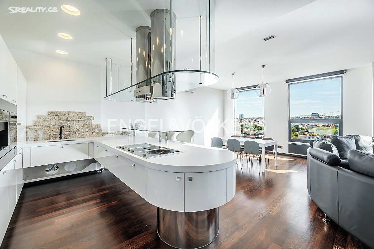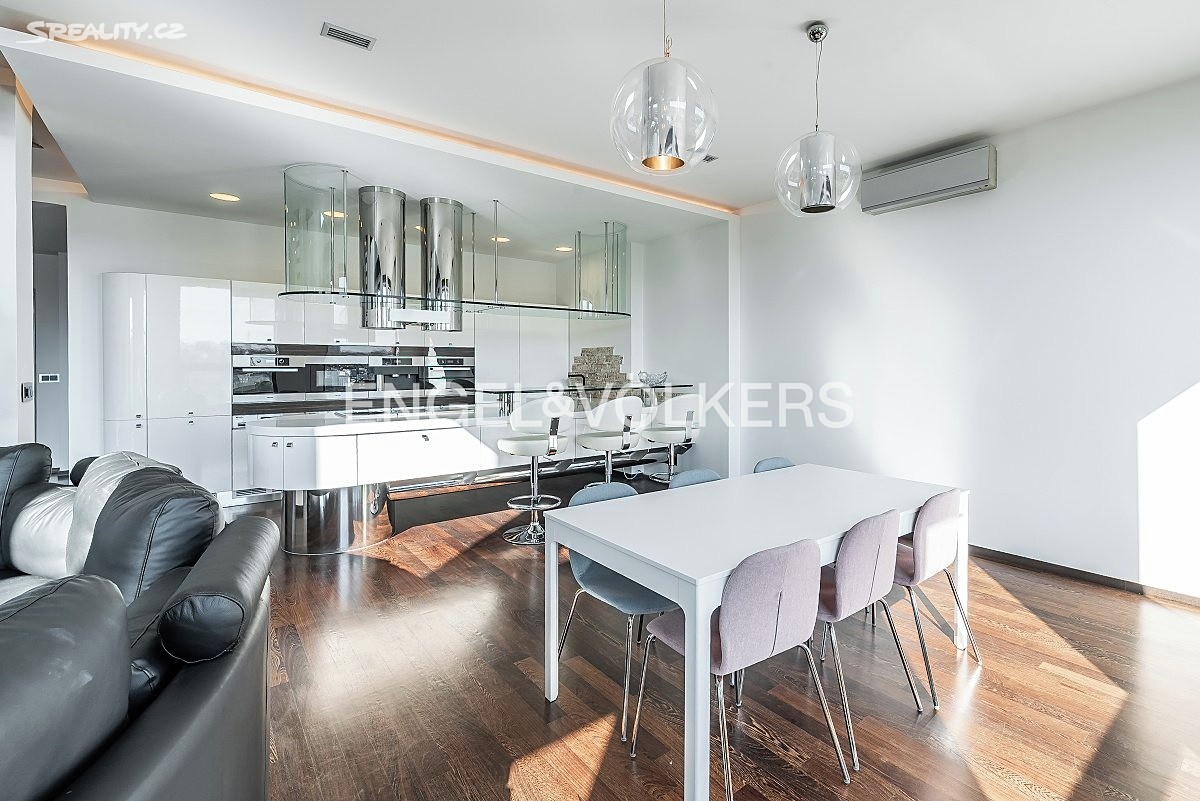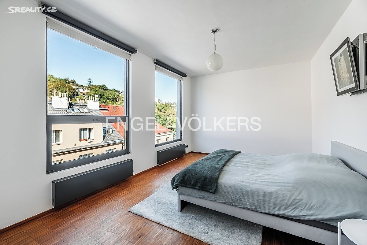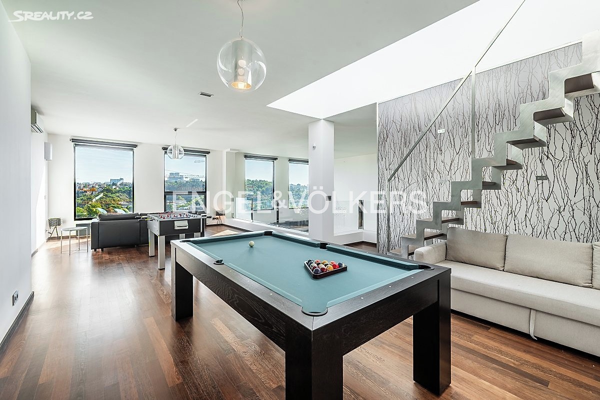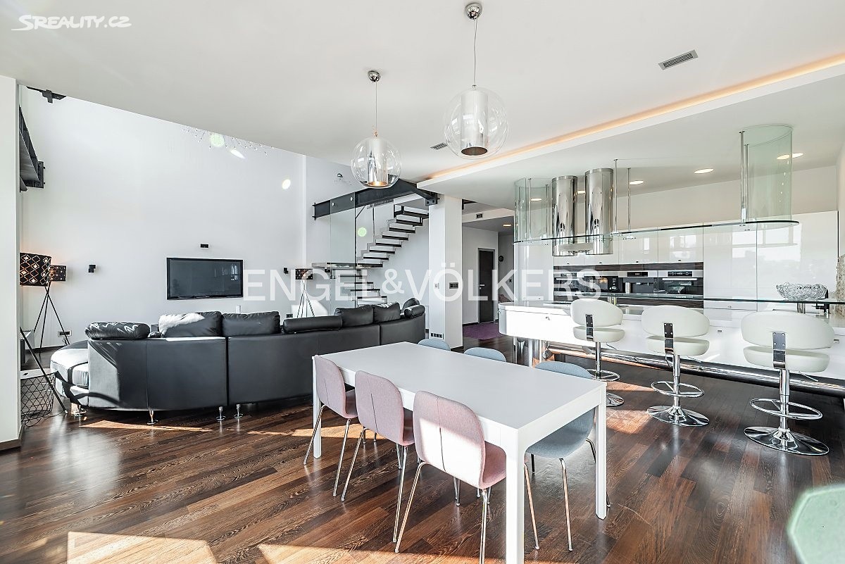 Luxury loft duplex on the 5th - 6th floor with a roof terrace and panoramic views of the Vltava valley, Vyšehrad, Dívčí Hrady and Prague Castle. The loft is located in an industrial building and is situated close to the commercial centre Anděl, near the quiet surroundings of the Prokopské údolí valley.