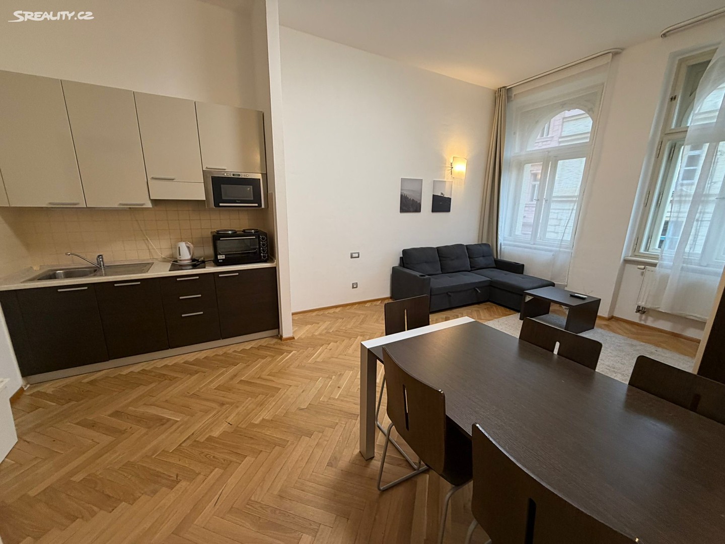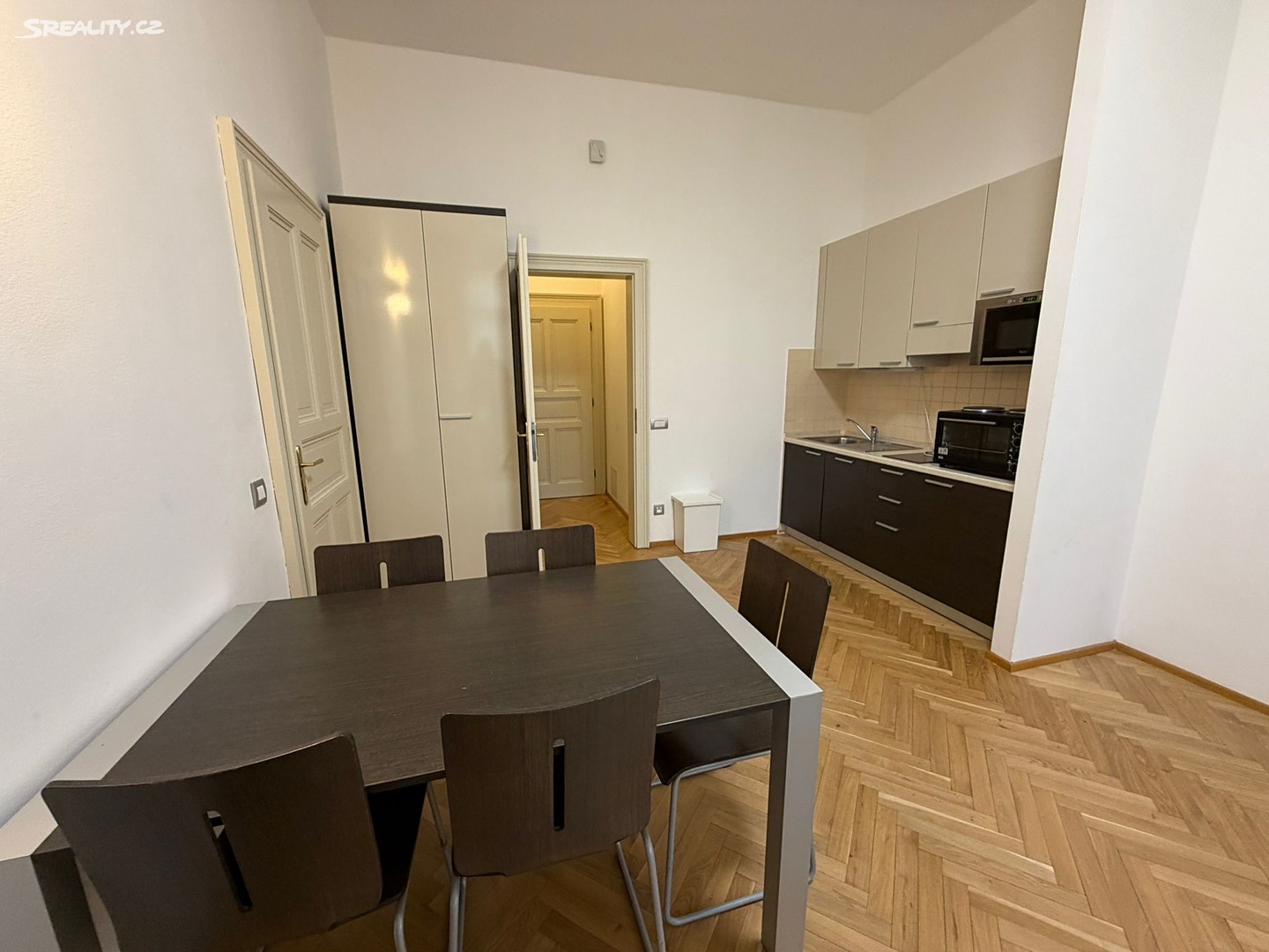 Beautiful representative apartment for rent after a complete expensive reconstruction in the center of Prague at a lucrative and sought-after address and you do not pay any commission with this offer! This elegant 2+kk apartment is located on the third floor of a brick building with an elevator. The building has undergone a complete reconstruction, has a reception and is located right in the center, which provides an ideal connection between housing and accessibility to the center for both work and entertainment. The apartment is ready to move in immediately.