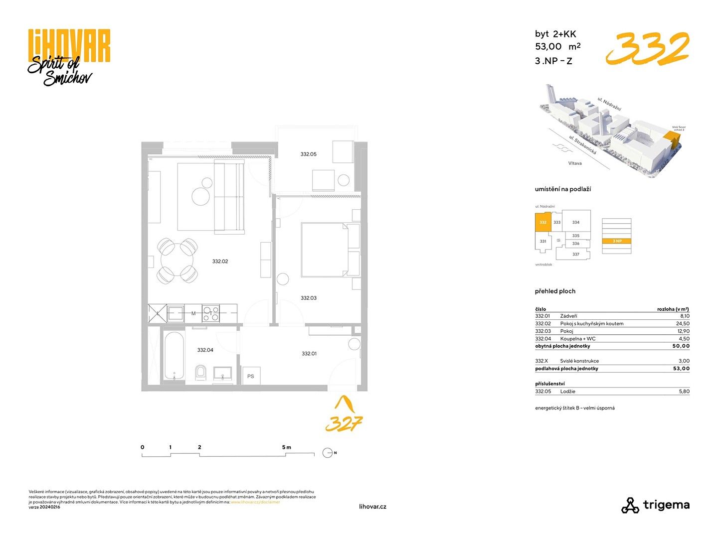 Modern Fully Furnished One Bedroom Apartment for Long-Term Rent located on the 3rd floor of the newly built residential complex LIHOVAR in the attractive neighborhood of Prague 5 – Smíchov.