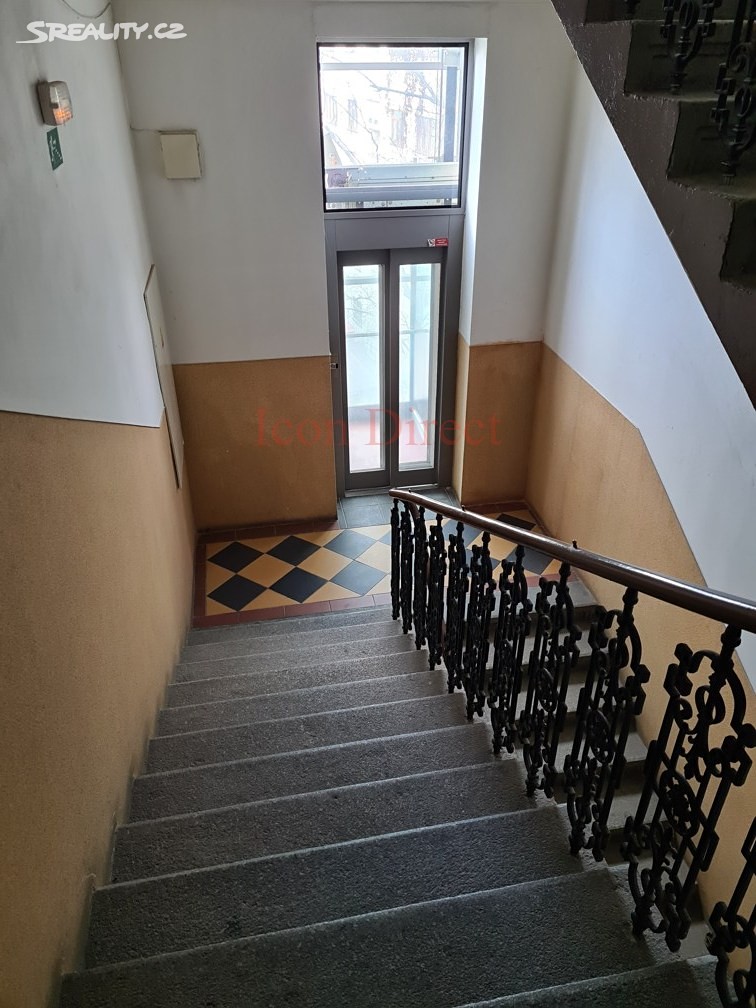 The apartment is located on the 3rd floor of an apartment building with an elevator and consists of a large hallway with a pantry, a dining room with a kitchenette, 2 separate rooms, a bathroom with a shower and a separate toilet. The kitchen and one of the rooms are located in the courtyard, the second room has windows to Korunní Street.