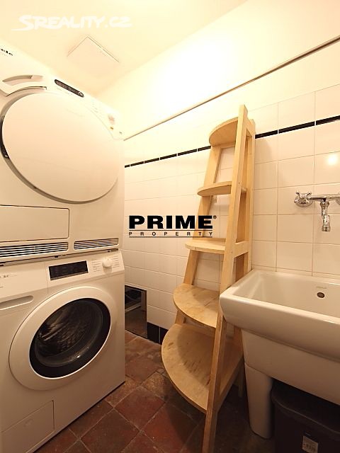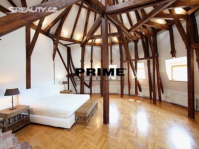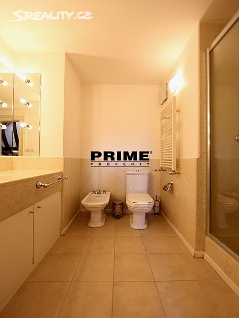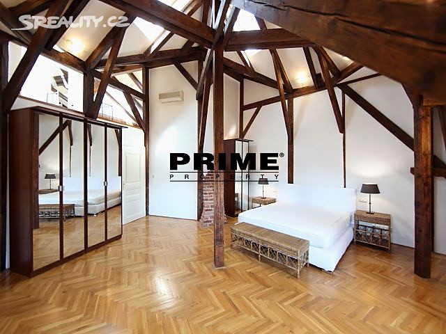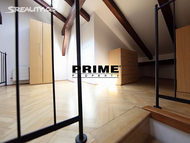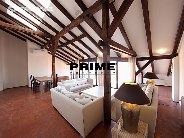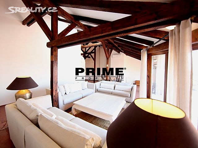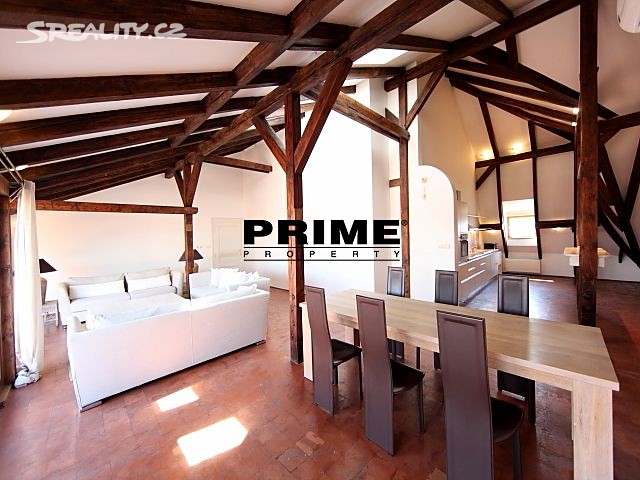 The property comprises: an entrance hallway, a large living room with oak ceiling beams, with a dining area and access to a 23m2 terrace with views of Prague and Prague Castle, an open, fully fitted modern kitchen with appliances (electric cooking hobs, electric oven, dishwasher and a refrigerator), an oak beamed master bedroom with an en suite bathroom (with a bathtub, sink, toilet and a bidet) and a gallery, two more bedrooms with en suite bathrooms (both with a shower cubicle, sink, toilet and a bidet) and galleries (wardrobe space and hanging space for clothes storage), a guest WC and a laundry room.