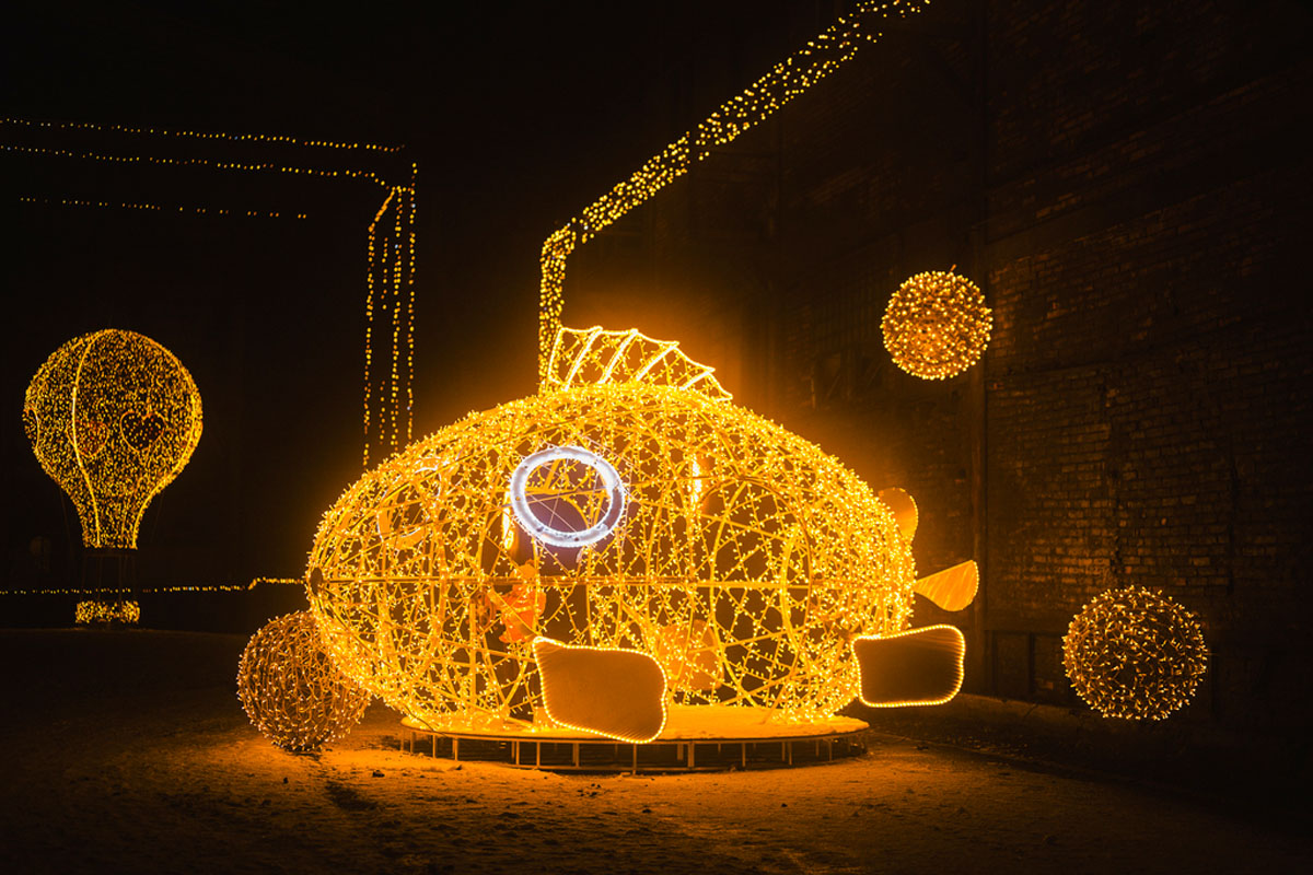 Гости могут осмотреть более 100 разнообразных скульптур, созданных при помощи тысяч лампочек.