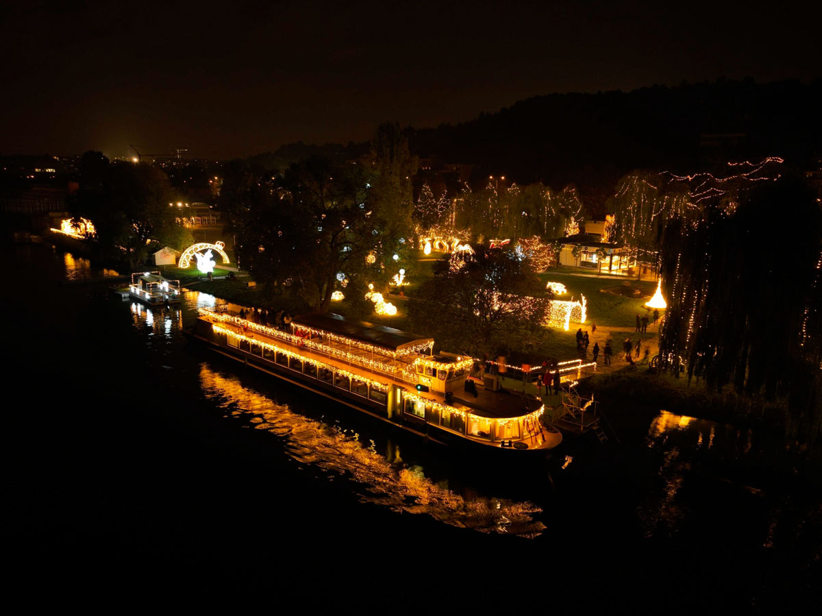 За дополнительную плату посетители могут прокатиться на корабле и осмотреть светящийся парк с реки.