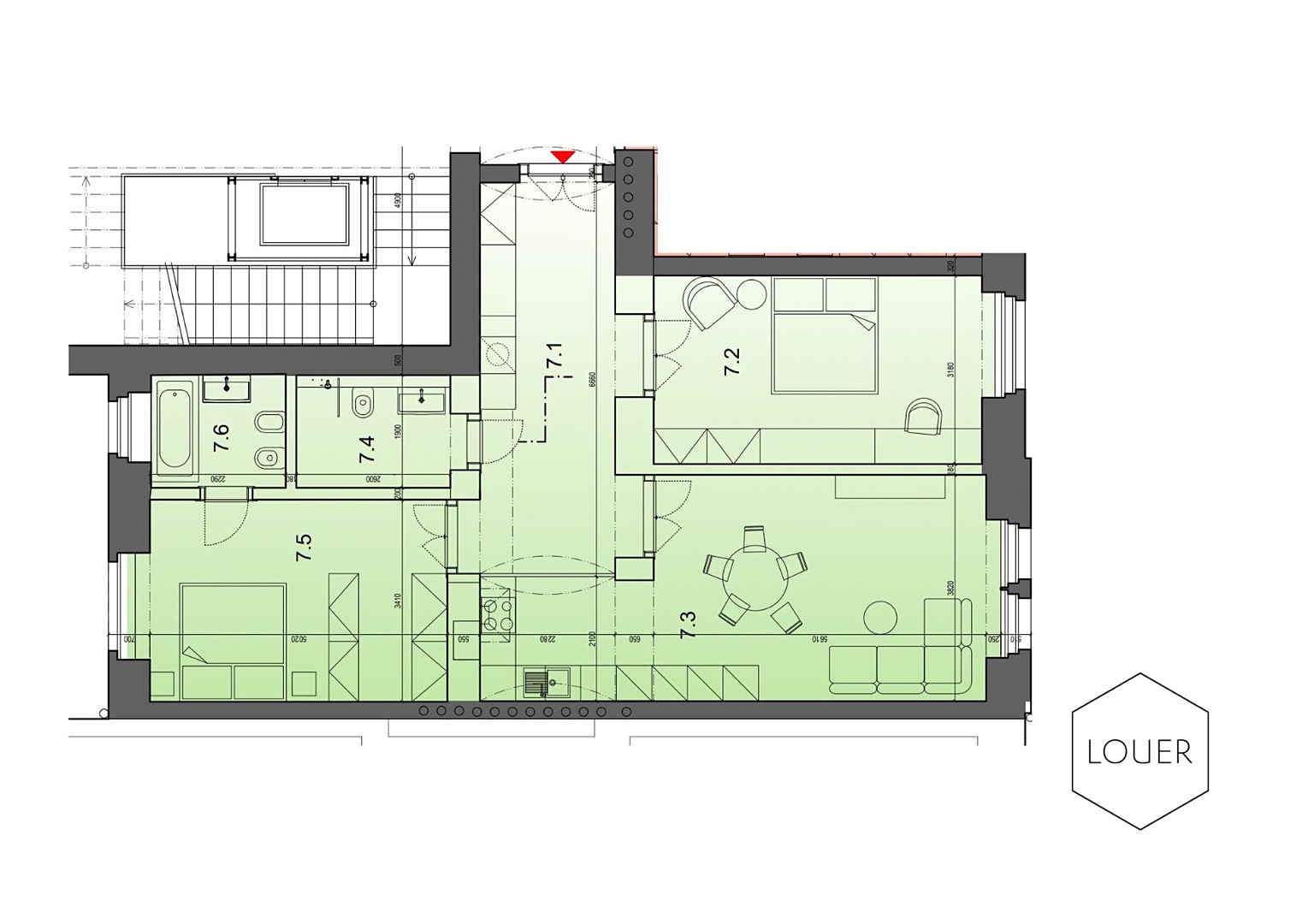 celkové ploše 96 m² , na 3NP budovy. Byt se nachází v reprezentativním secesním domě na