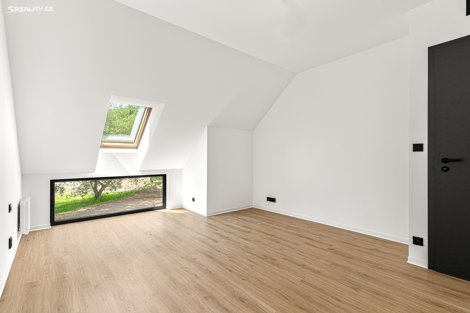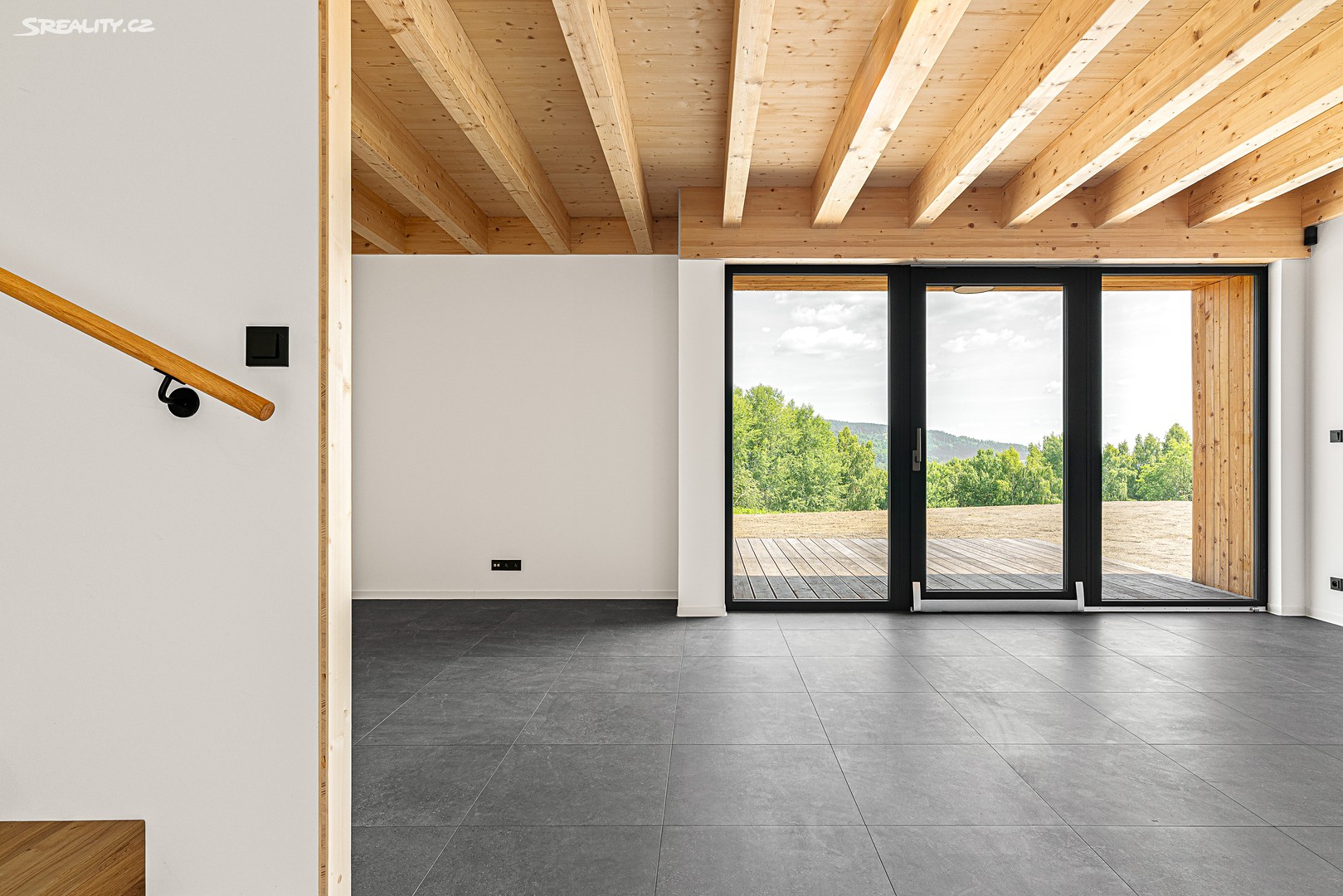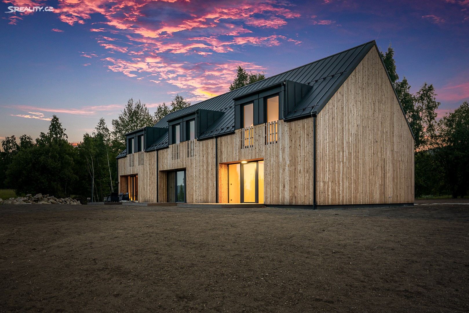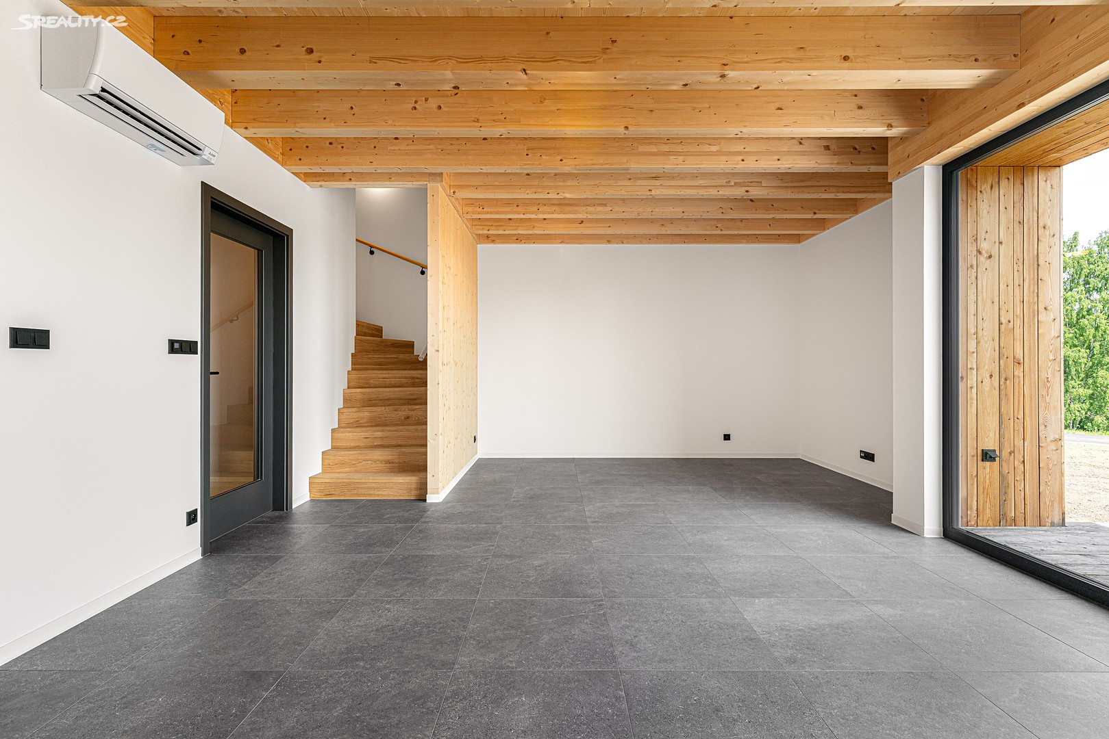 Stavbu tvoří masivní konstrukce z dřevěných CLT panelů s nadstandardním zateplením. Střecha je rovněž z masivních konstrukčních hranolů, pokrytá falcovanou střešní krytinou v elegantní černé barvě, doplněná o dřevěná střešní okna Velux.