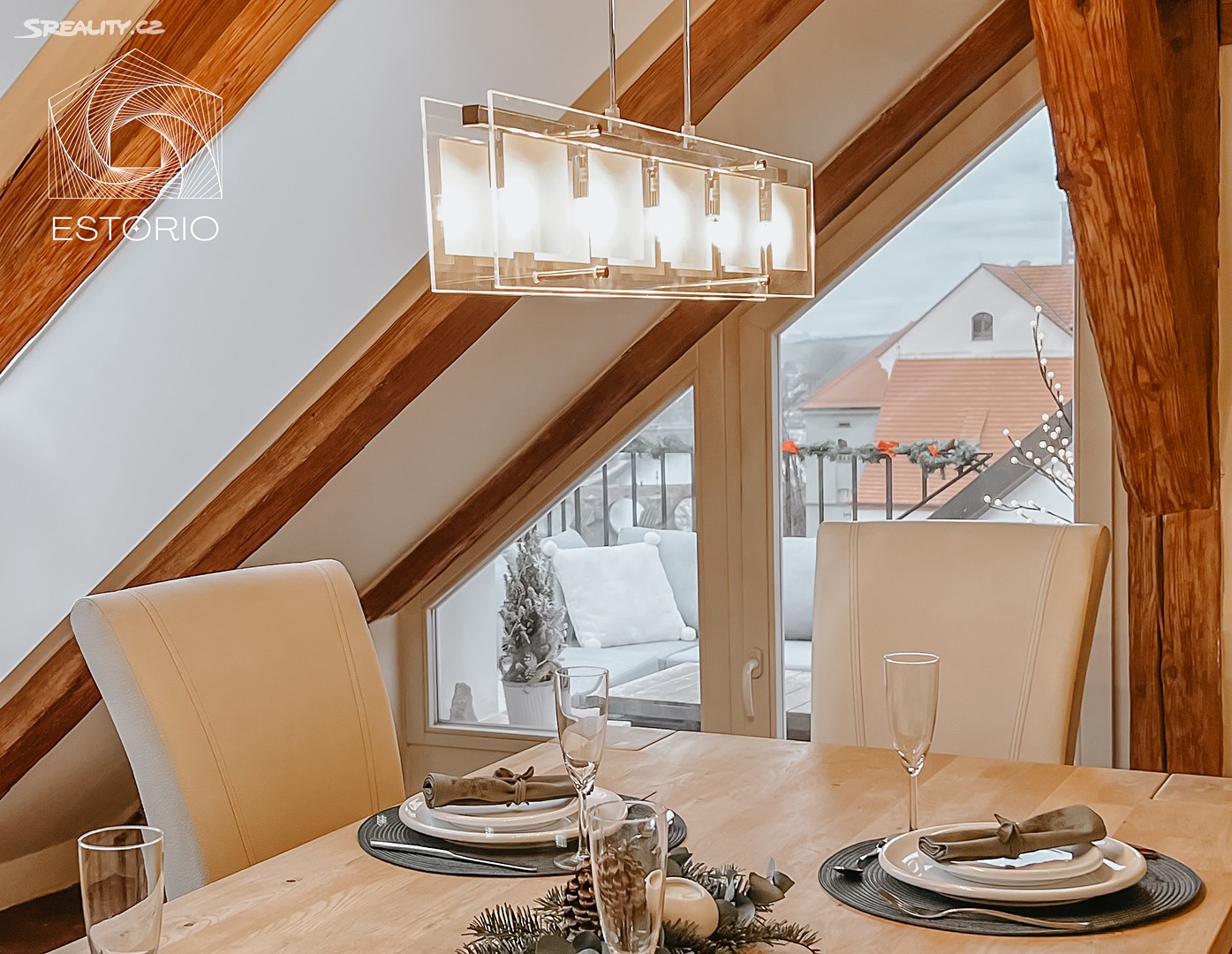 Byt se nachází v ulici Fráni Šrámka, která je srdcem historického centra města Písek. Jedná se o podkrovní byt o dispozici 3+kk s celkovou podlahovou plochou 190 m² a unikátní terasou o velikosti 8 m². Byt je umístěn v renesančním domě ze 16. století, který je součástí městské památkové zóny.
