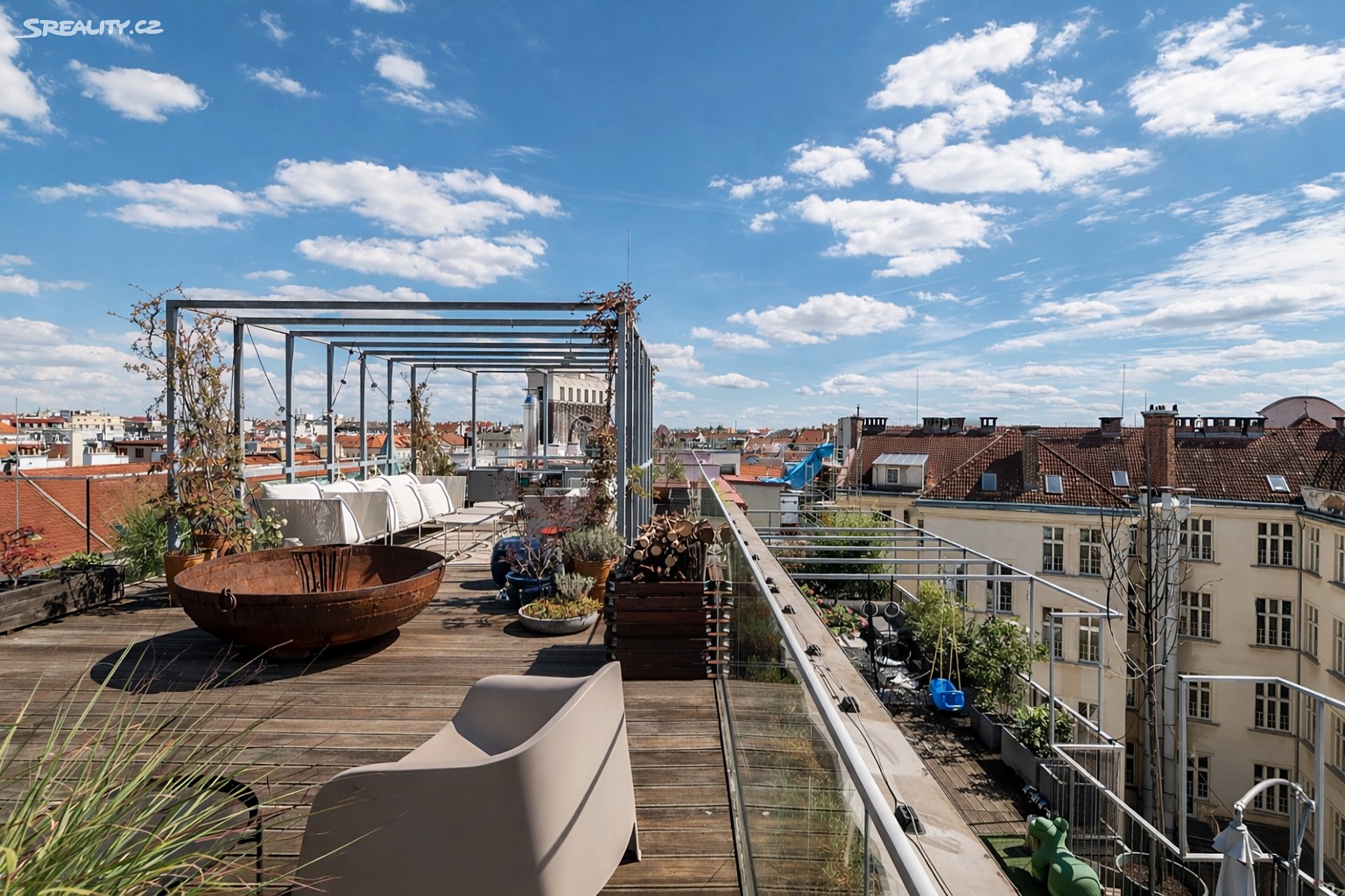 V exkluzivní rezidenci Laubova nabízíme k pronájmu výjimečný mezonetový byt o dispozici 4+kk s celkovou plochou 454 m² včetně tří teras. Samotná obytná plocha činí 260,5 m² a navazují na ni terasy o celkové výměře 193,5 m². Absolutní dominantou této jedinečné nemovitosti je rozlehlá střešní terasa s otevřeným výhledem na kostel Nejsvětějšího Srdce Páně na náměstí Jiřího z Poděbrad.