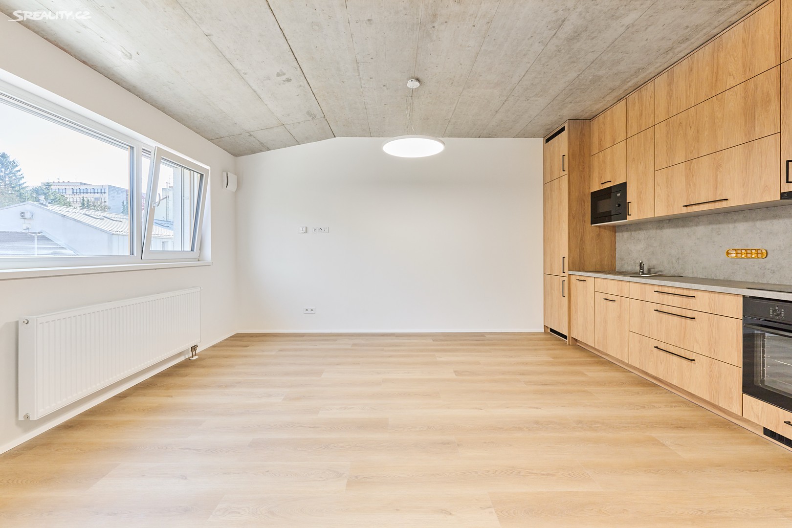 Interiér bytu působí velmi čistým a moderním dojmem. Součástí je krásná kuchyňská linka, která přirozeně zapadá do celkového stylu bytu. Velkým benefitem je také rekuperace, díky které je v bytě příjemné klima, a předokenní žaluzie, které zvyšují komfort bydlení i soukromí.
