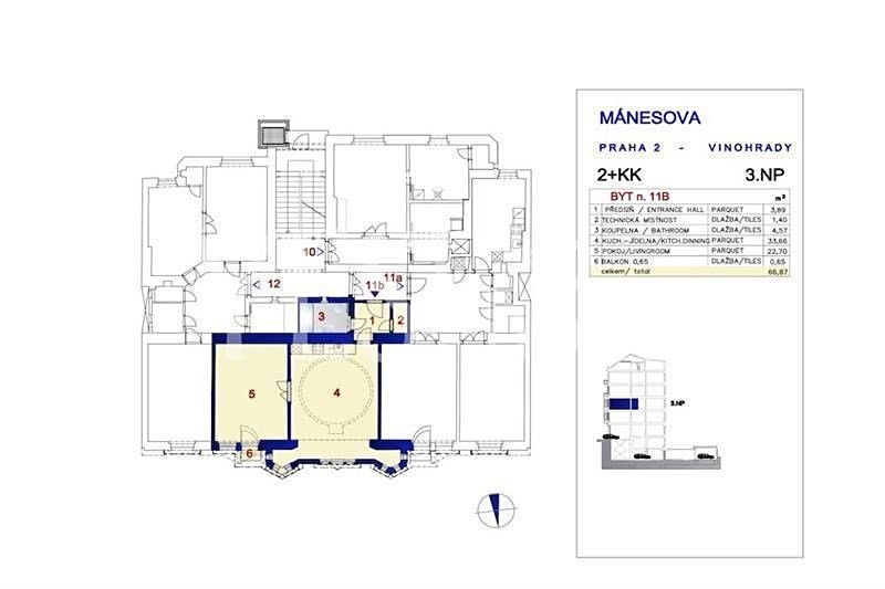 Luxusní, kompletně nově zrekonstruovaný, nezařízený byt 2+kk s balkonem, 66,87 m2, 2. patro s výtahem velmi dobře udržovaného, kompletně nově renovovaného secesního domu s bezpečnostním kamerovým systémem v lukrativní a klidné lokalitě centra města přímo u Riegrových sadů, Mánesova, Praha 2 - Vinohrady. V bytě je vstupní hala, velkorysý obývací pokoj s plně vybaveným kuchyňským koutem (digestoř, indukční deska, el. pečící trouba, myčka, lednice), oddělená ložnice, koupelna se sprchovým koutem a toaletou, technická místnost s novým elektrickým kotlem (ohřev vody a topení - úsporný noční proud), pračkou a balkon se vstupem z ložnice. Kvalitní dřevěné parketové podlahy v kombinaci s dlažbou. Bezpečnostní dveře, intercom, SAT, UPC, CETIN (T-mobile, O2). Perfektní dostupnost, jen 10 min. pěší chůze k Václavskému náměstí, u domu tram. Vinohradská tržnice, linka 11, nedaleko metro Náměstí Míru, linie A či Jiřího z Poděbrad, linie A. Poplatky 1 700 Kč/os. + elektřina. Vratná kauce 2 měsíční nájmy. Garážové stání za extra příplatek 4 000 Kč. Volný ihned. Doporučuji!