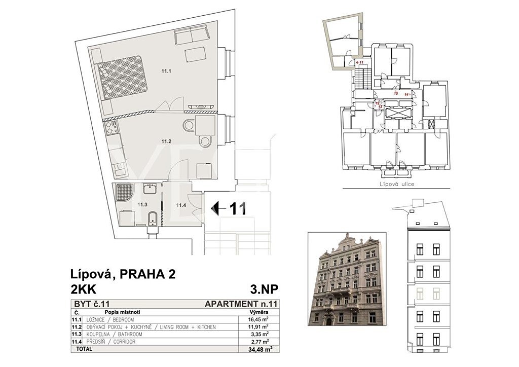 Luxusní, nově zrekonstruovaný, nezařízený byt 2+kk, 34,48 m2, 2. patro s novým moderním výtahem nově zrekonstruovaného secesního domu v pěším dosahu Václavského náměstí, Lípová, Praha 2 - Nové Město. Byt nabízí vstupní halu, obývací pokoj s plně vybavenou kuchyňskou linkou (digestoř, sklokeramická varná deska, elektrická pečící trouba, myčka, lednice, pračka), samostatnou ložnici, koupelnu se sprchovým koutem a toaletou. Kvalitní parketové podlahy v kombinaci s dlažbou, vlastní nový plynový kotel Vaillant (ohřev vody, vytápění), bezpečností dveře, intercom. U domu tram. Štěpánská, nedaleko metro I.P. Pavlova, line C nebo metro Karlovo náměstí, linie B. Poplatky 1 700 Kč/os. + převod energií na nájemce. Volný ihned.