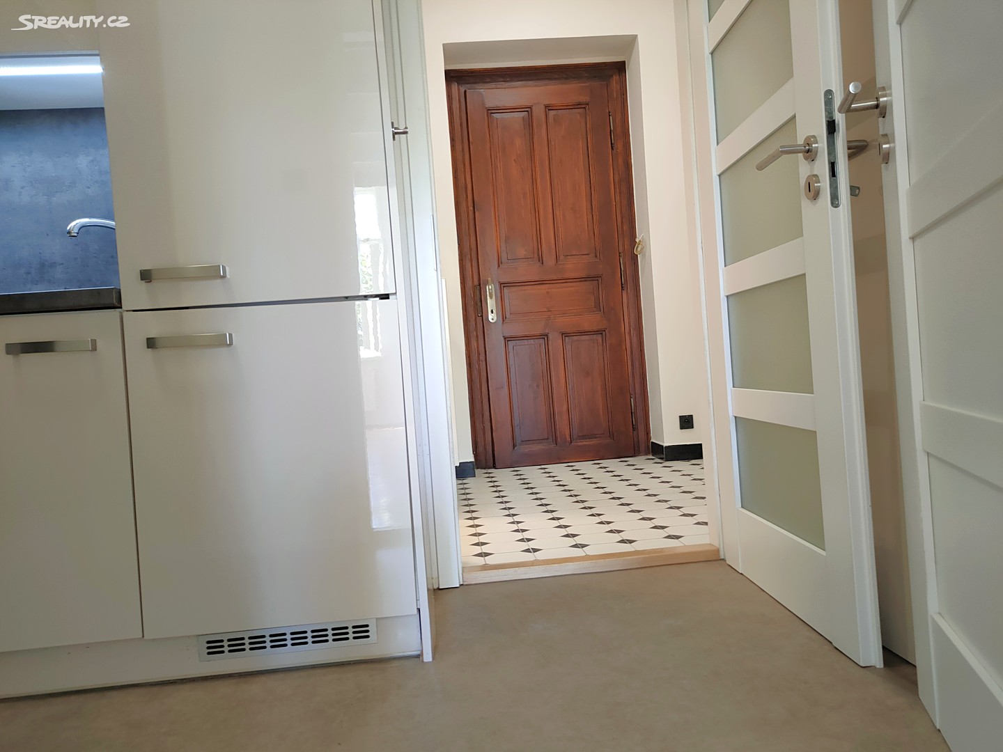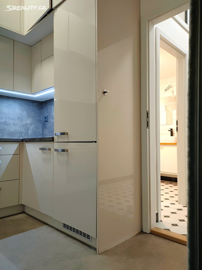 Z předsíně se jde přes část, kde je umístěný kuchyňský kout s kuch. linkou vč. varné desky, el. trouby, lednice s mrazákem.