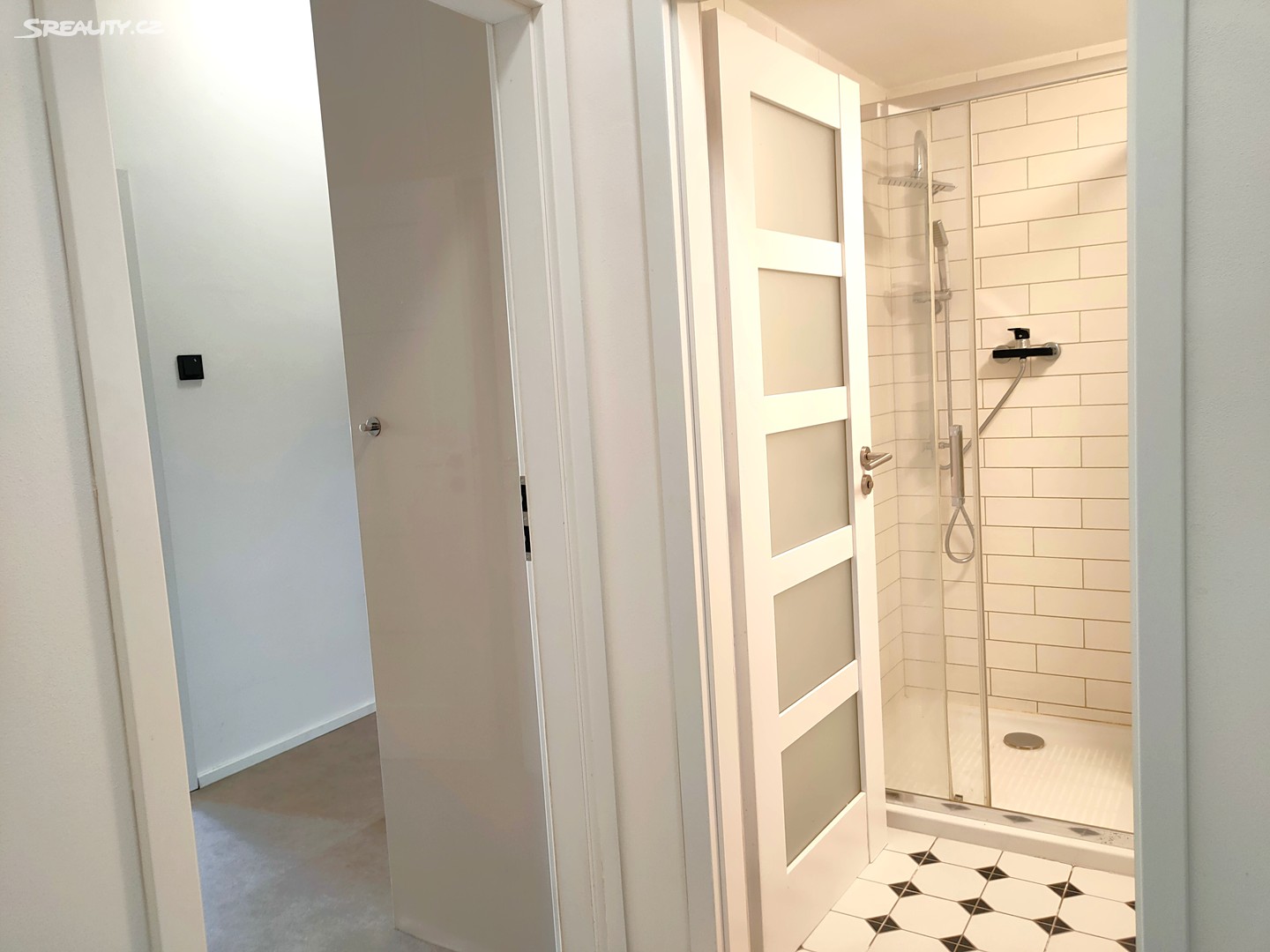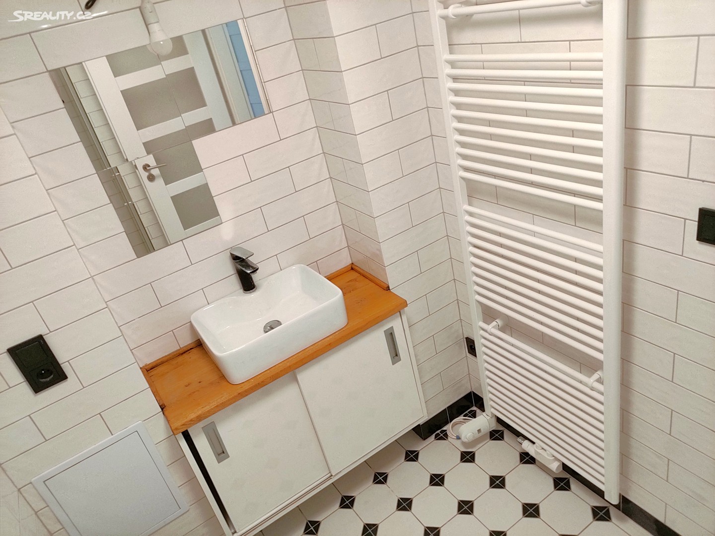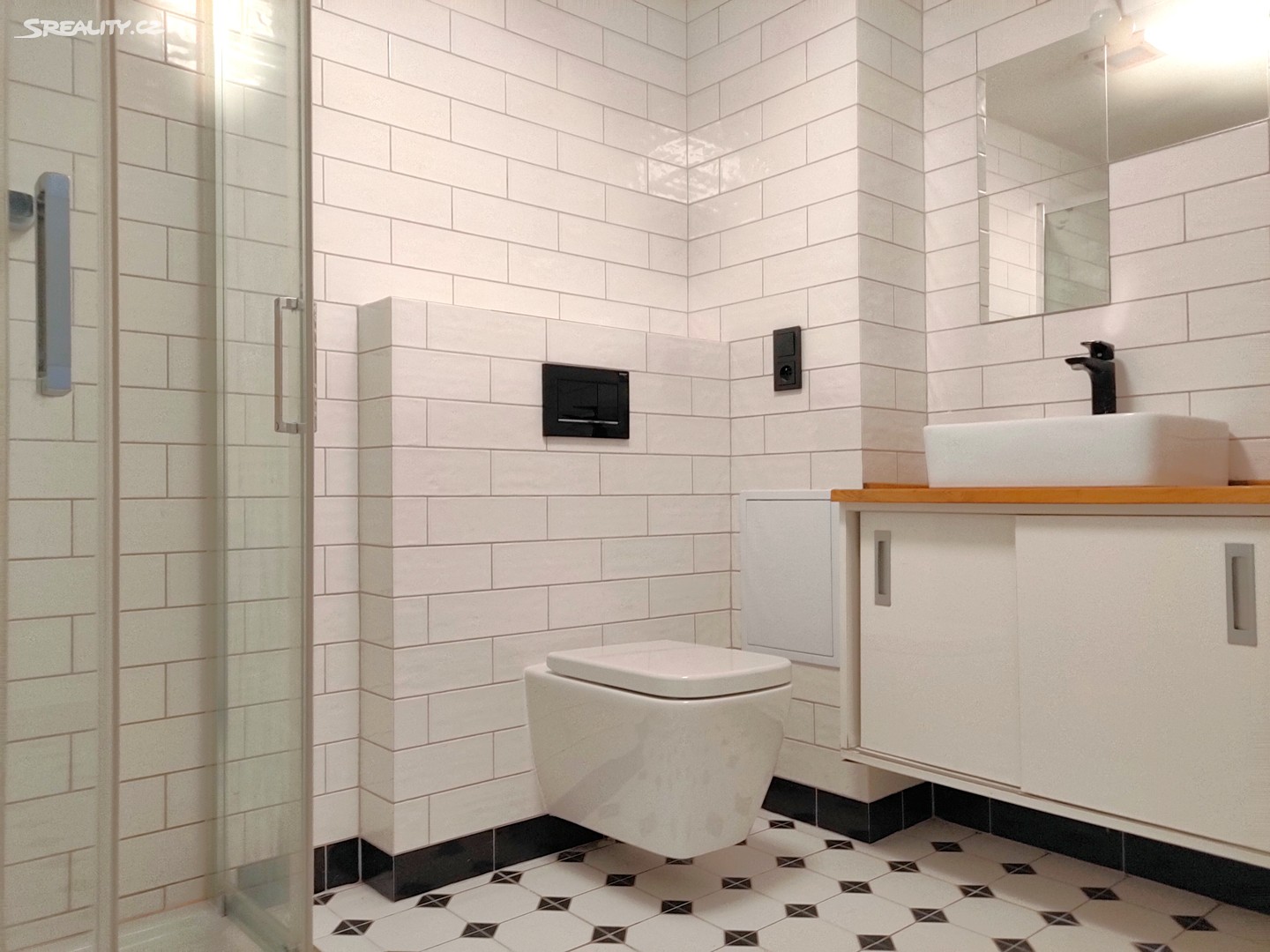 Koupelna je se sprchovým koutem a WC. Vytápění bytové jednotky je přes plynový kotel, který je umístěný v suterénu domu.