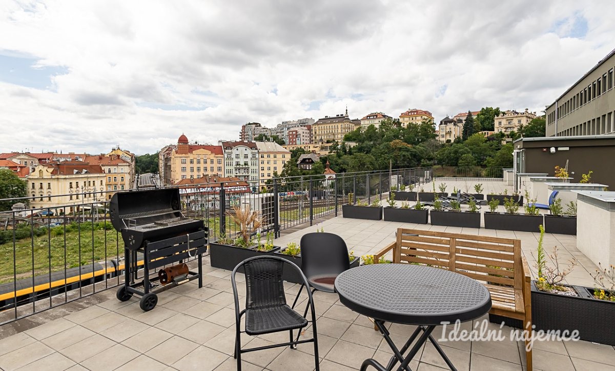 For long-term sublease, we offer a beautiful modern 1+kk studio available in the popular residential location of Prague 2 - Vinohrady near the Gröbovka park, which smoothly transitions into the Perucká stráň park. The studio with a total area of 26 m2 is located on the 3rd floor of the new development project Depo Grébovka with a stylish reception and an elevator. The studio also includes a cellar, and residents can use a private fitness room, a laundry room and a shared roof terrace with unique views of the surrounding area. The walkable roof can also be used for barbecuing or relaxing.