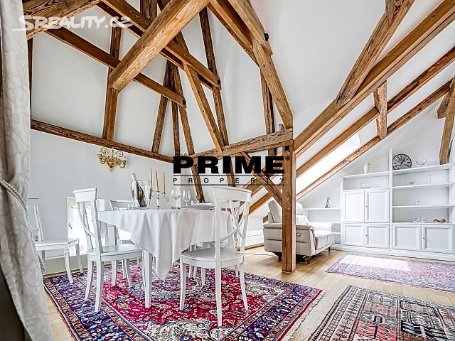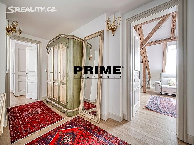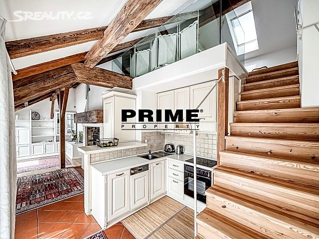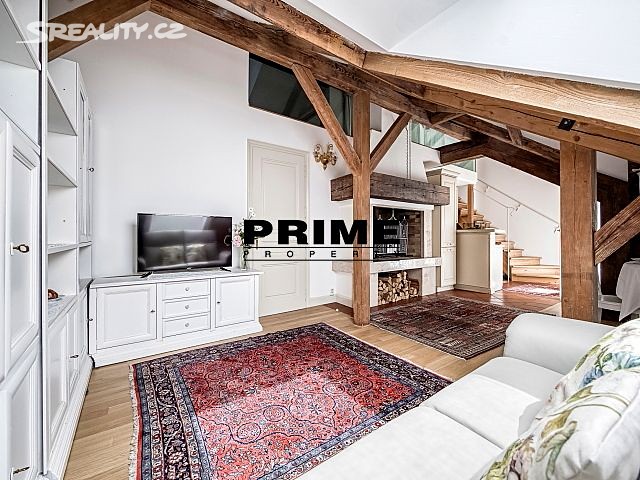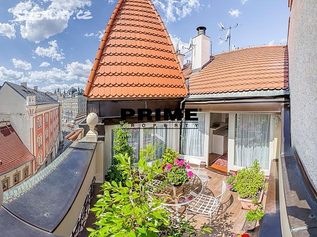 Newly renovated, furnished, air conditioned, 2 bedroom, 1 bathroom, duplex apartment for rent, 3+kk, 127m2, with a private terrace, situated on the 5th and 6th floors of a completely renovated apartment building with a lift. The building is located in a quiet street, in the downtown area of Prague 1, only 2 minutes´ walk to a tram stop, Náměstí Republiky metro station on yellow line "B" and Palladium shopping mall with a supermarket, 10 minutes´ walk to Wenceslas Square and Old Town Square, close to shops, cafés, bars and restaurants.