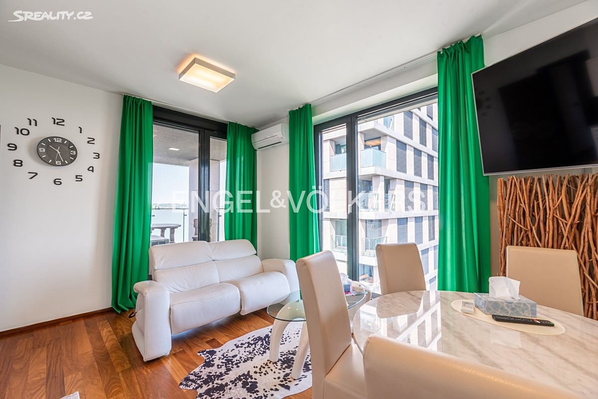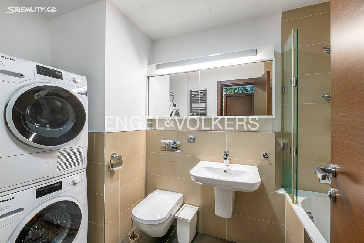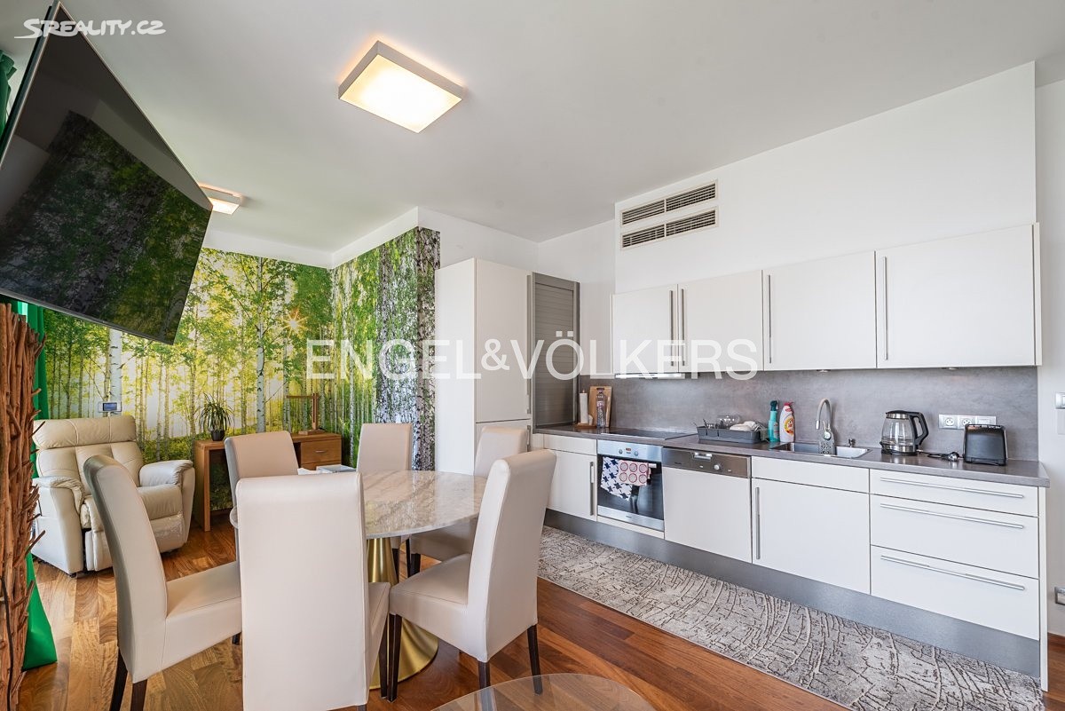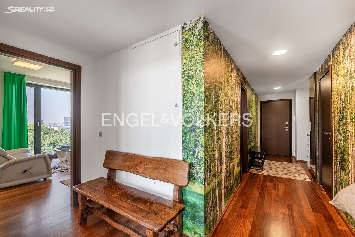 A fully furnished 3+kt apartment of 102 sqm with a balcony is available for immediate rent, located on the 5th floor of the attractive residential project Kavčí Hory Residence, close to the Arkády shopping center and the business district in Pankrác.