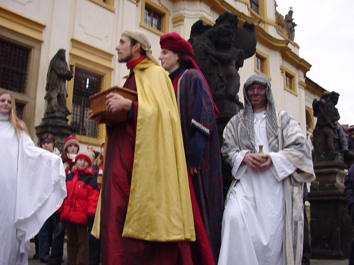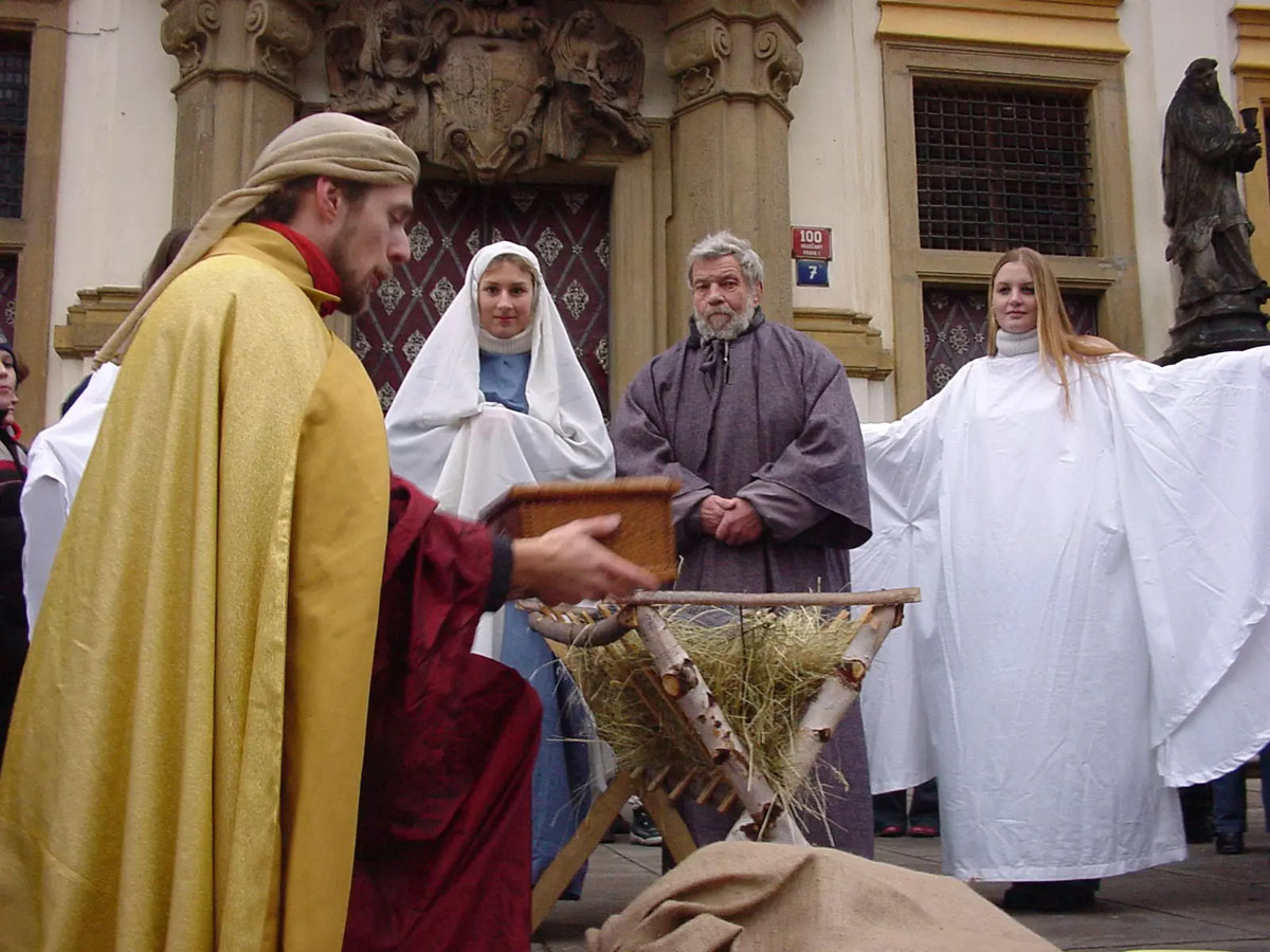 В четверг, 25 декабря, все желающие отметить праздничный день прогулкой по центру Праги смогут увидеть живой вертеп в исполнении профессиональных актеров театра Divadlo Apropo. Они наденут тематические наряды и покажут сценку Рождества Христова.